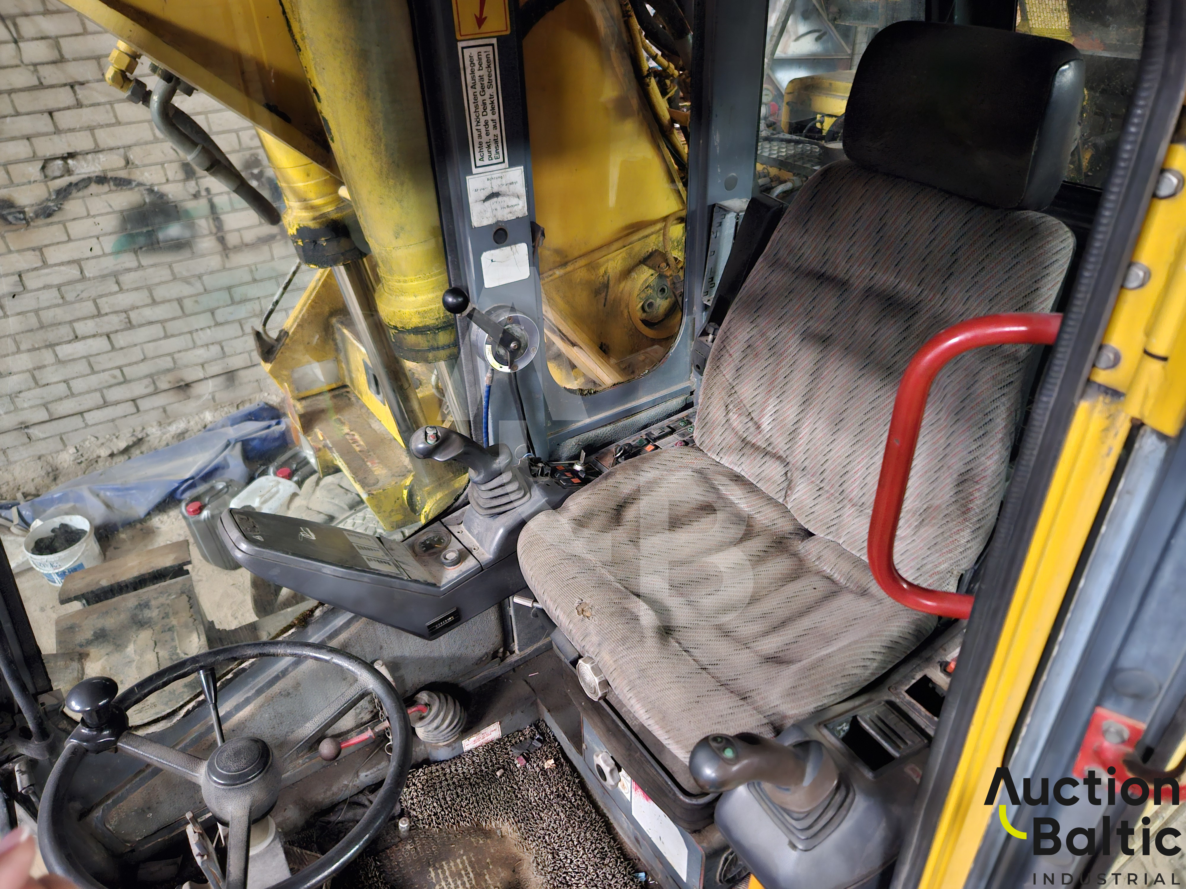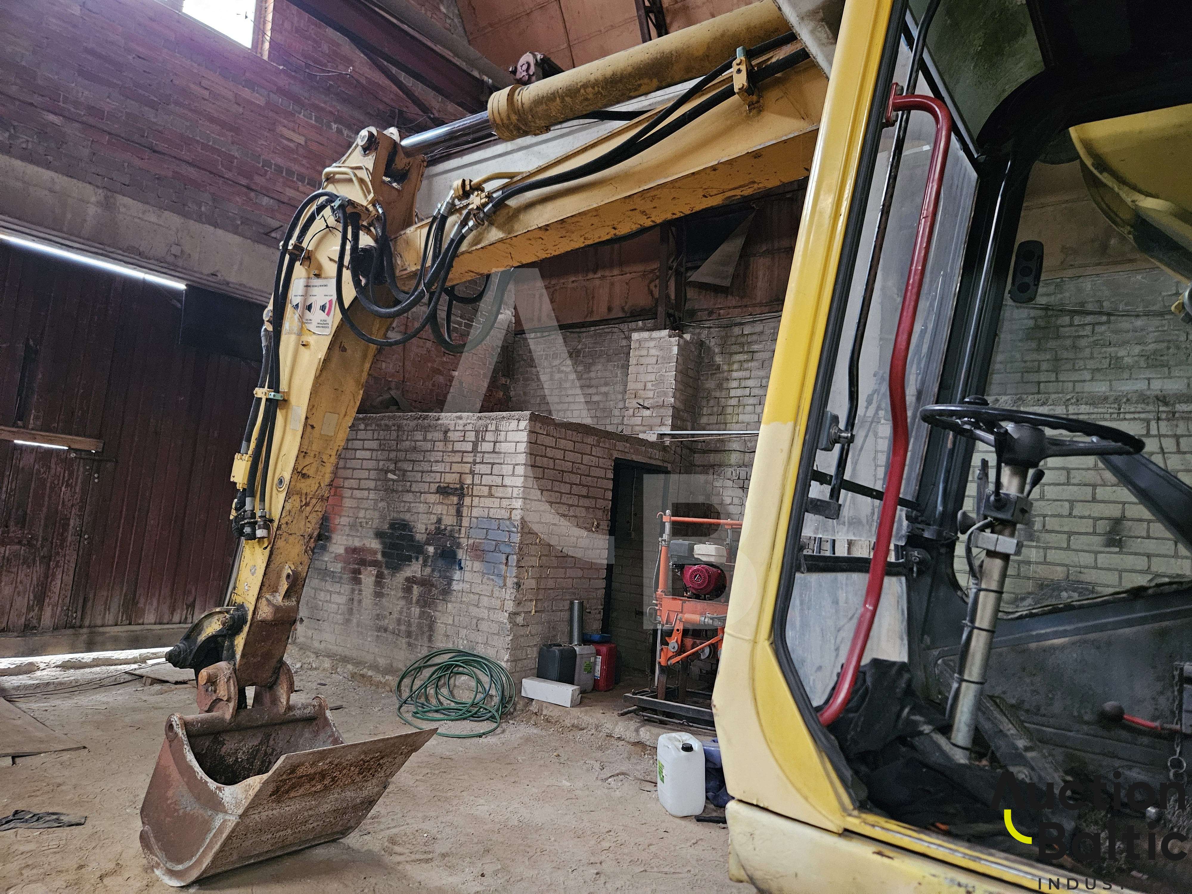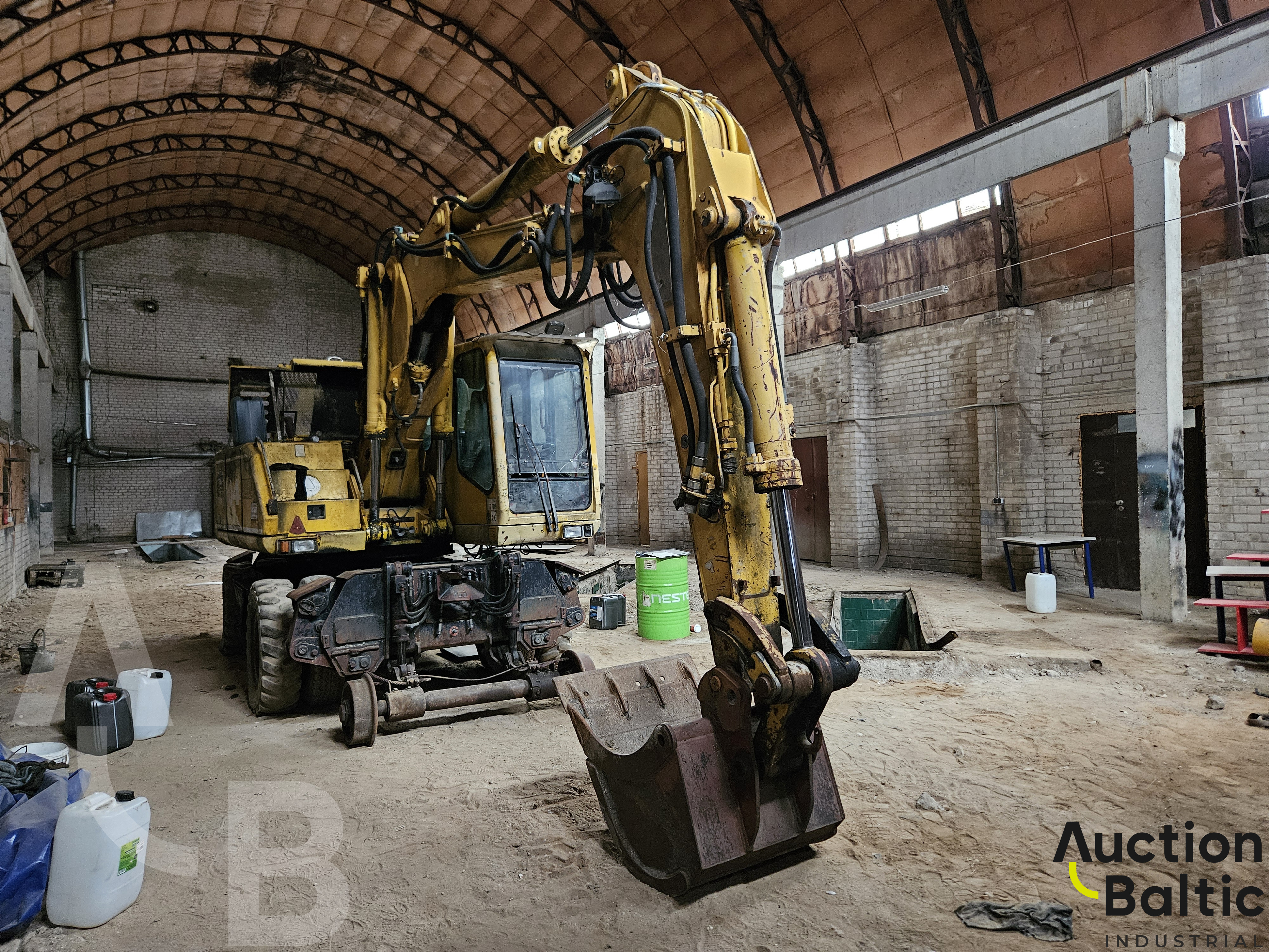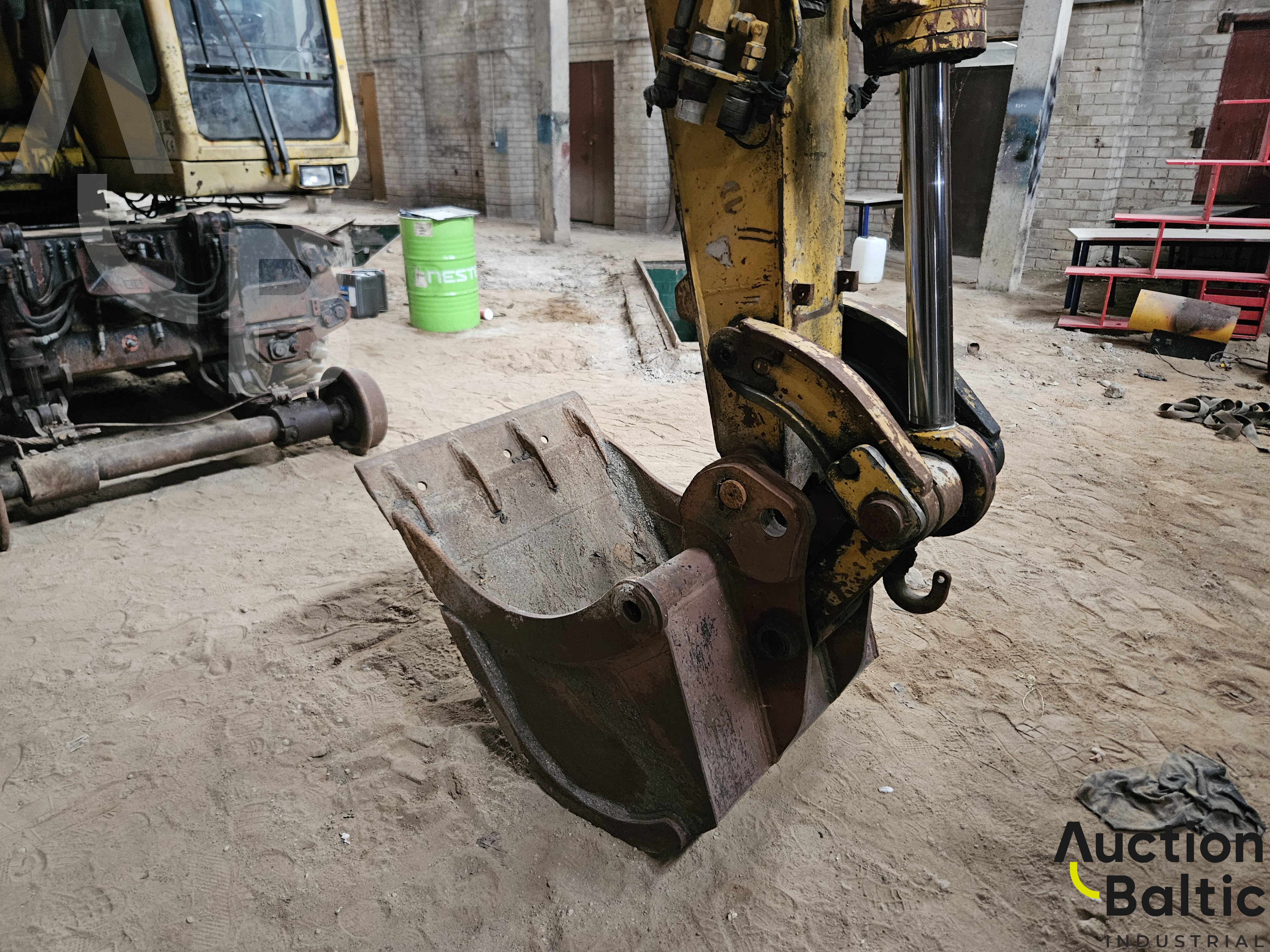 Ekskavatorius turi bėginę važiuoklę, gali dirbti ant bėgių. Naudotas prieš 2 metus, tada buvo veikiantis.