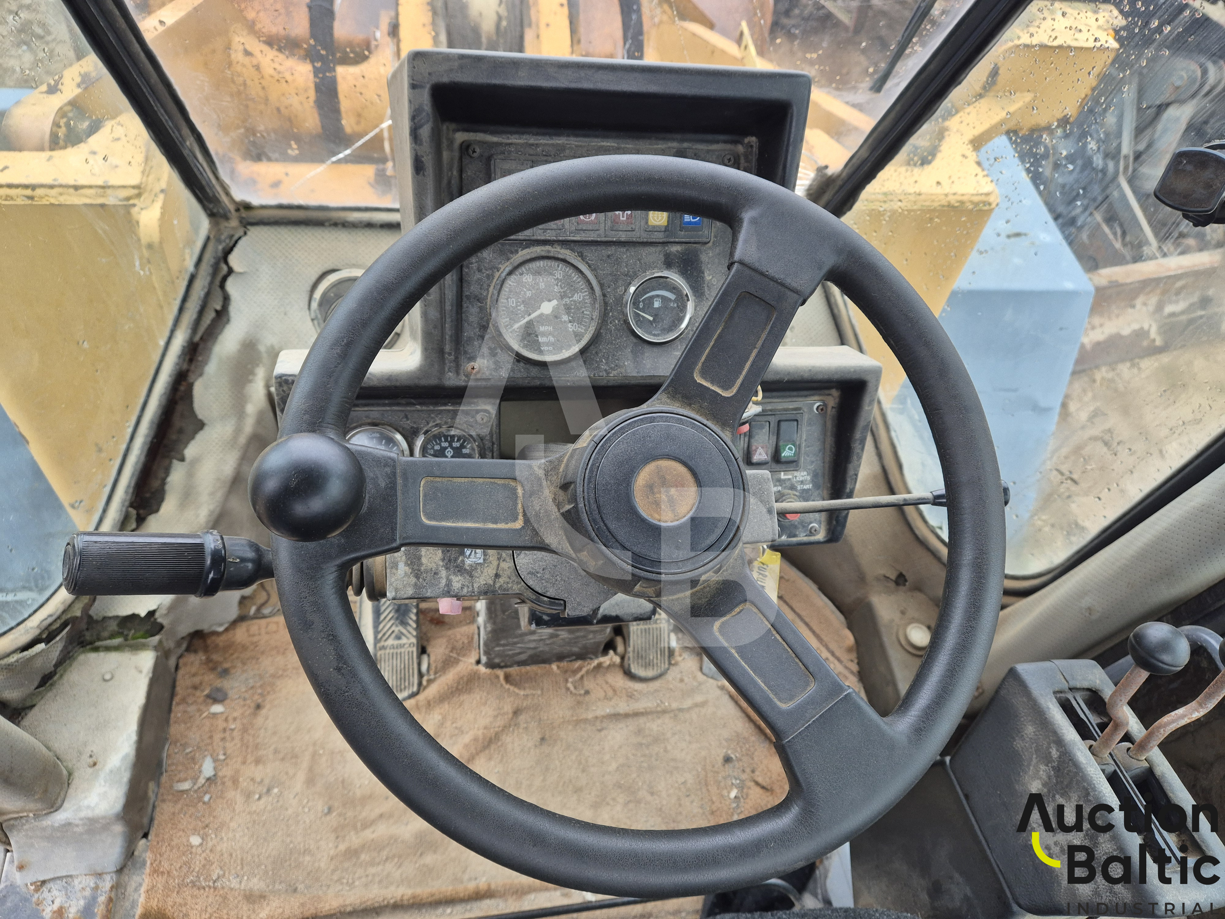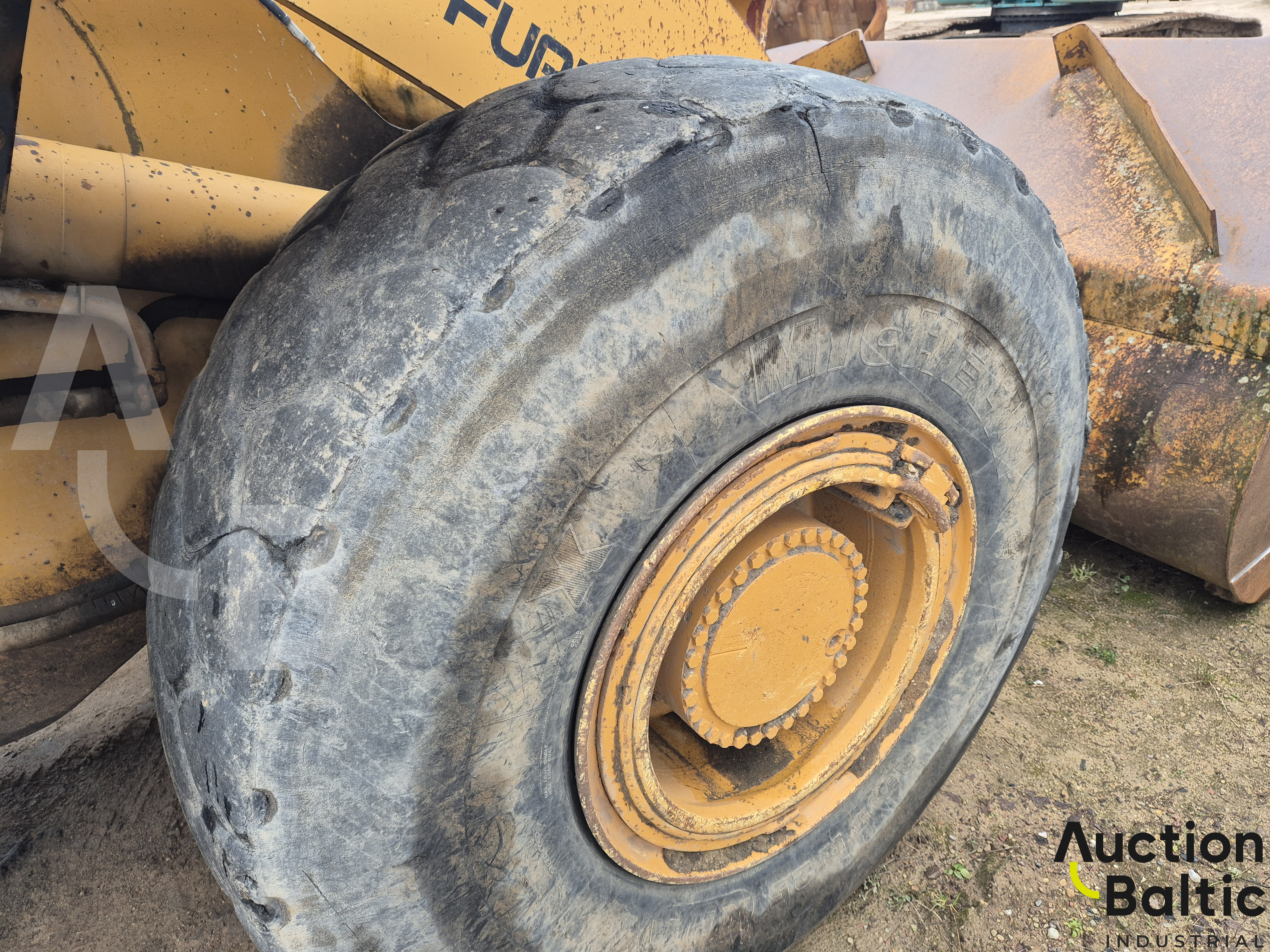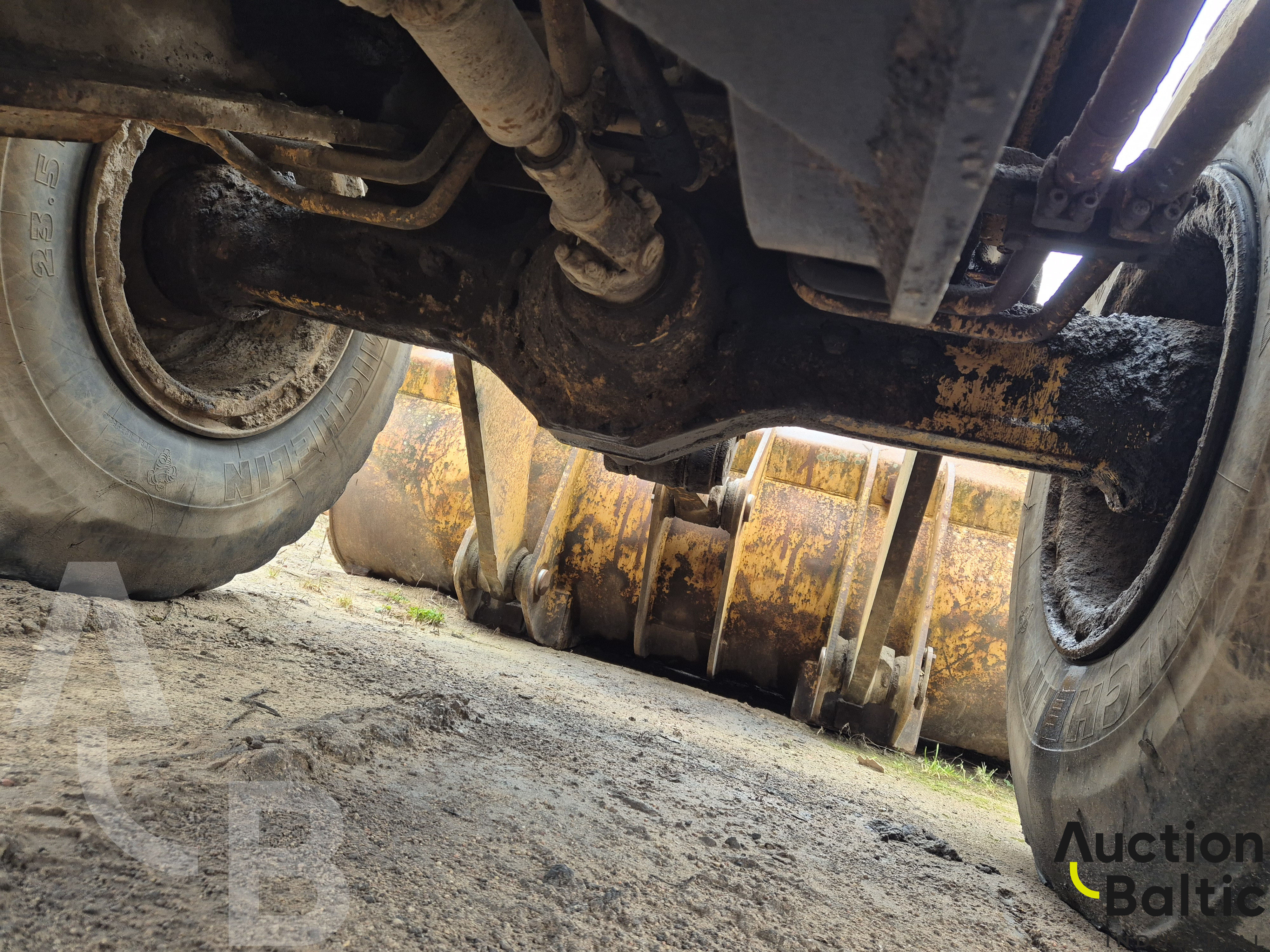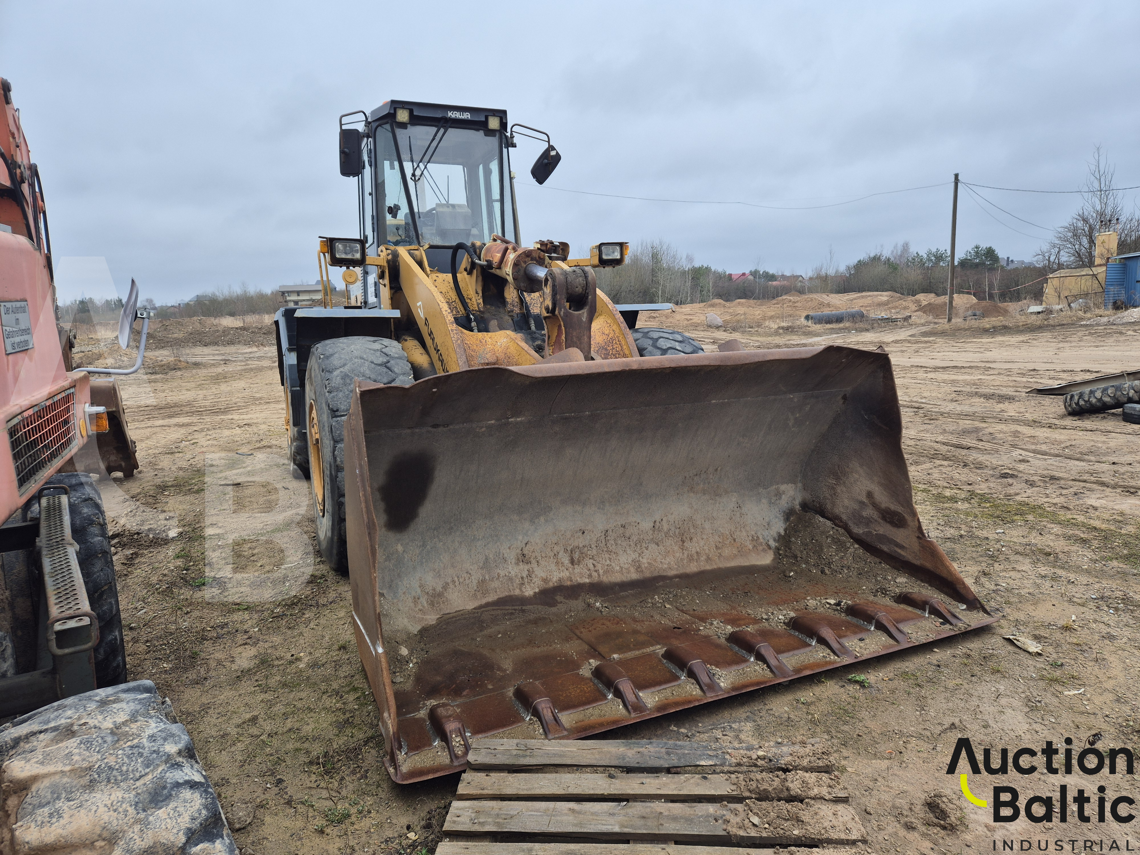 Frontalinis krautuvas su variklio defektu, bet kuriasi ir važiuoja.