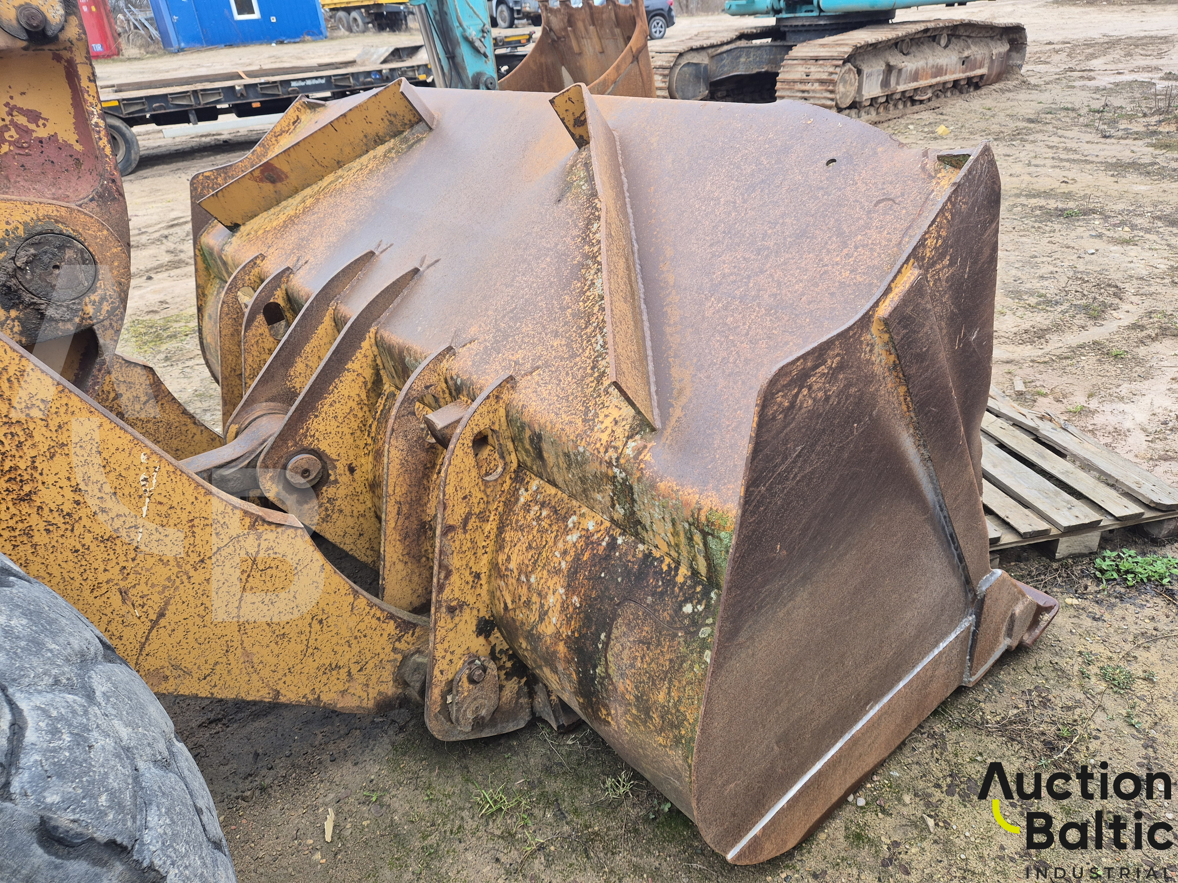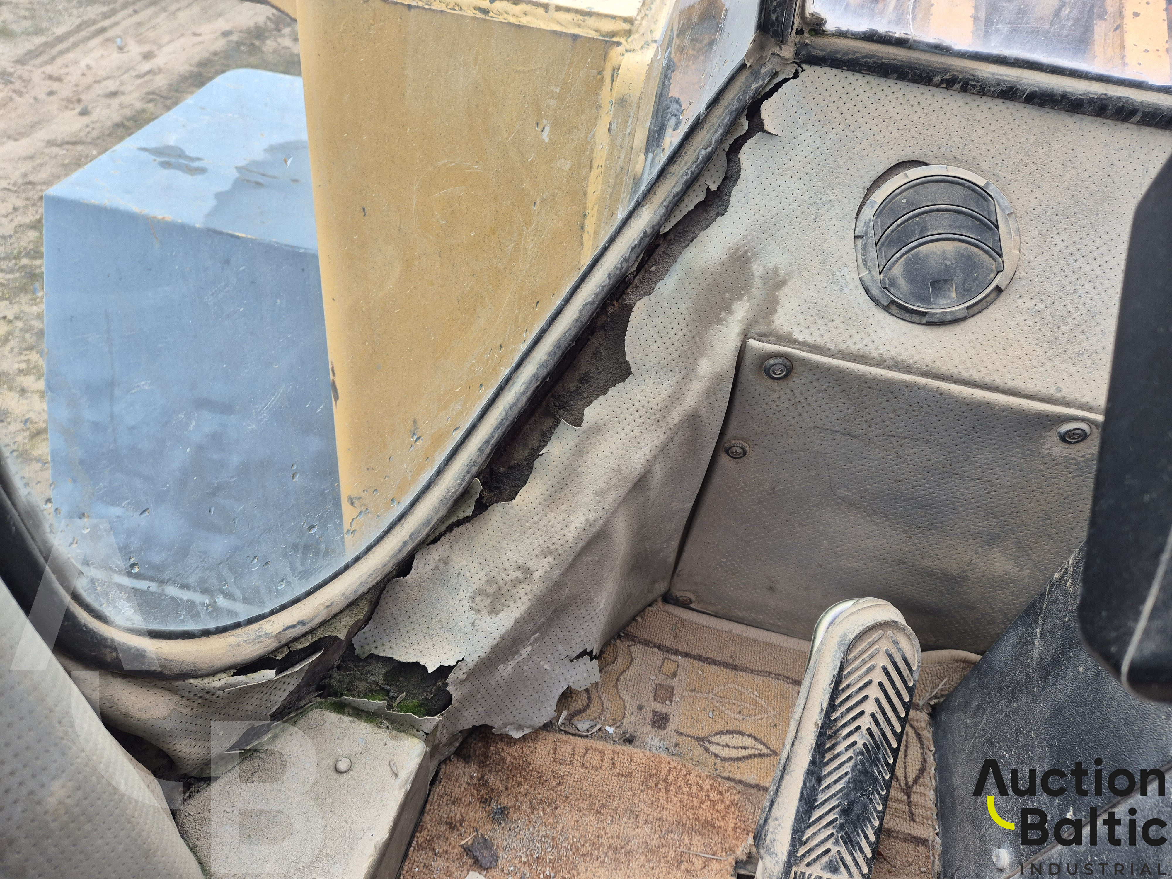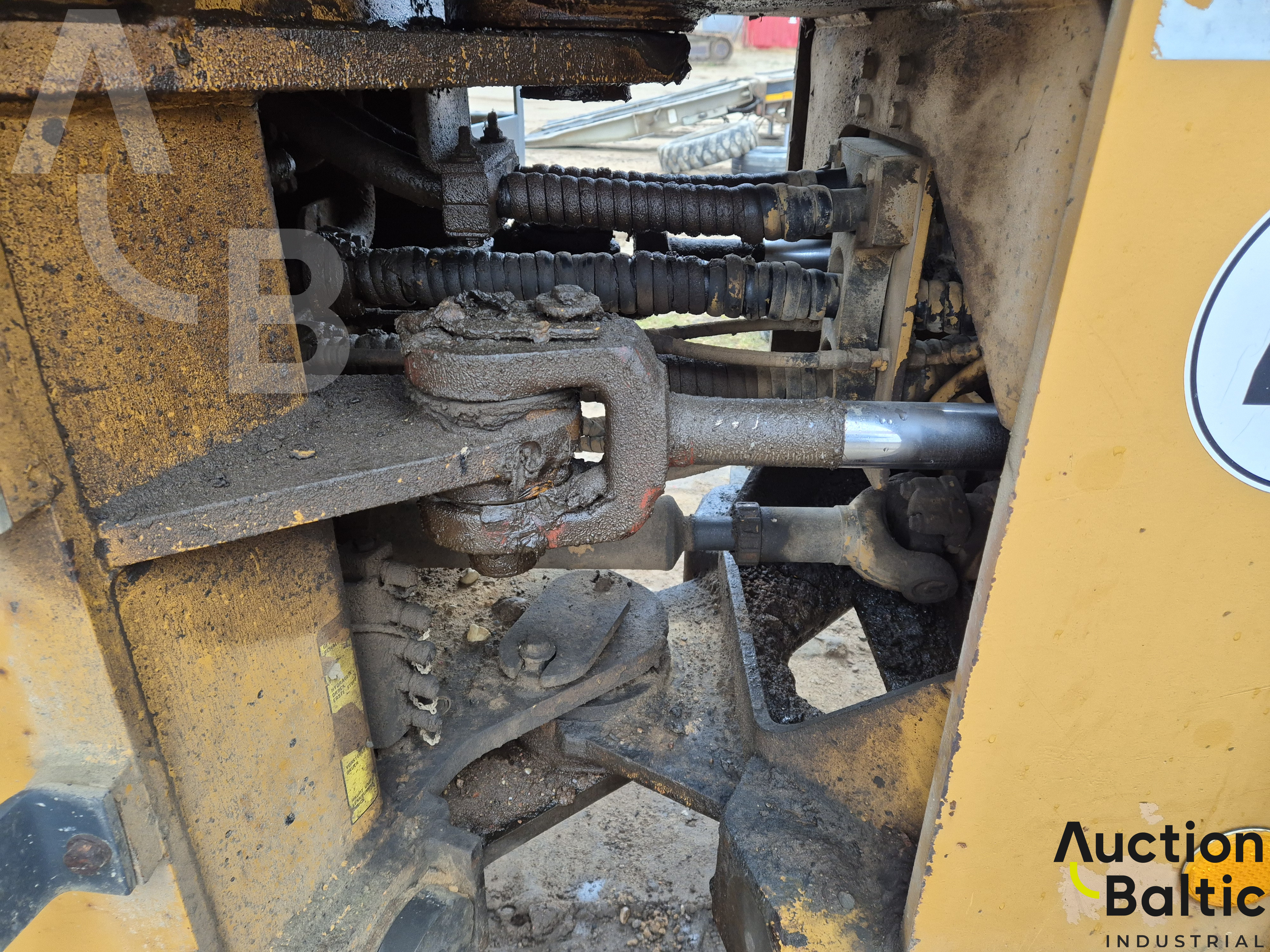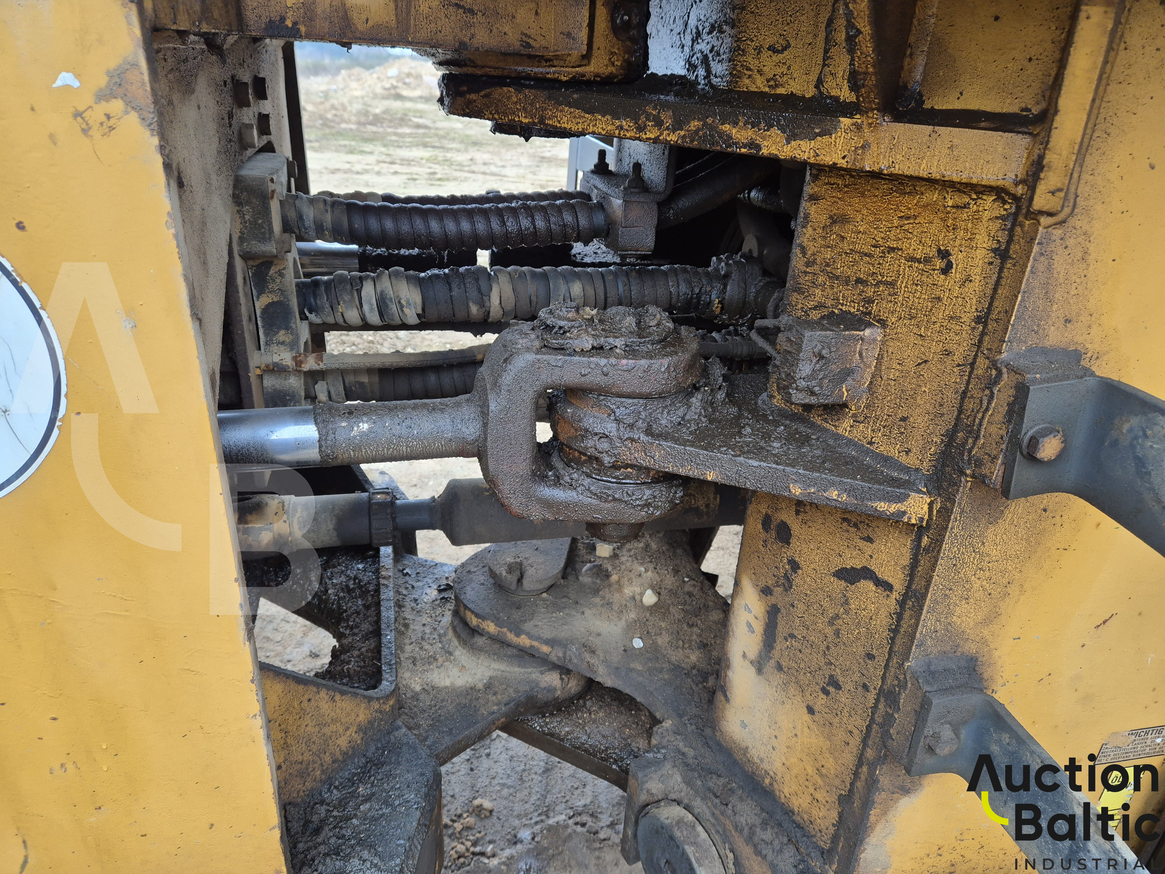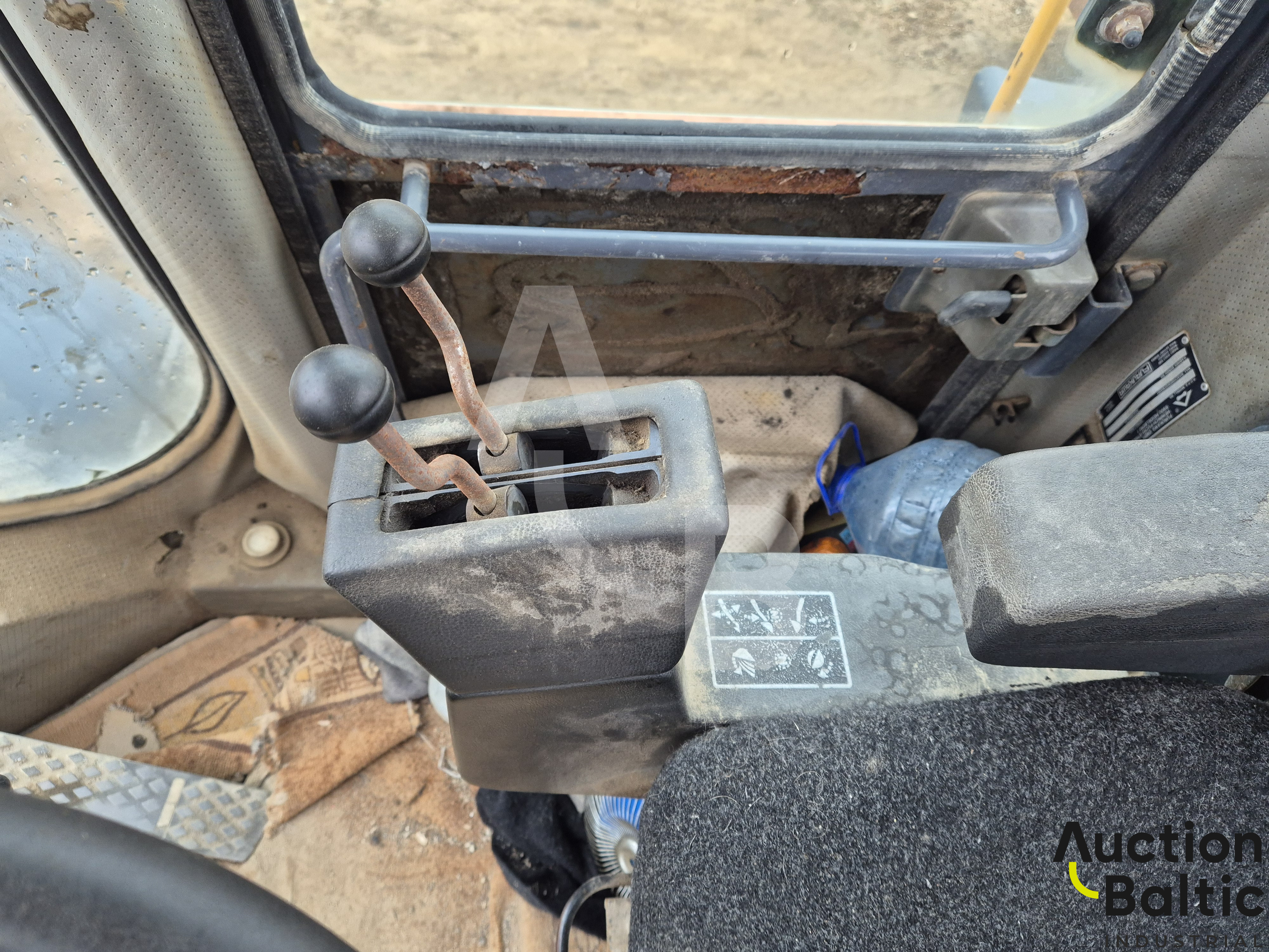 Frontalinis krautuvas su variklio defektu, bet kuriasi ir važiuoja.