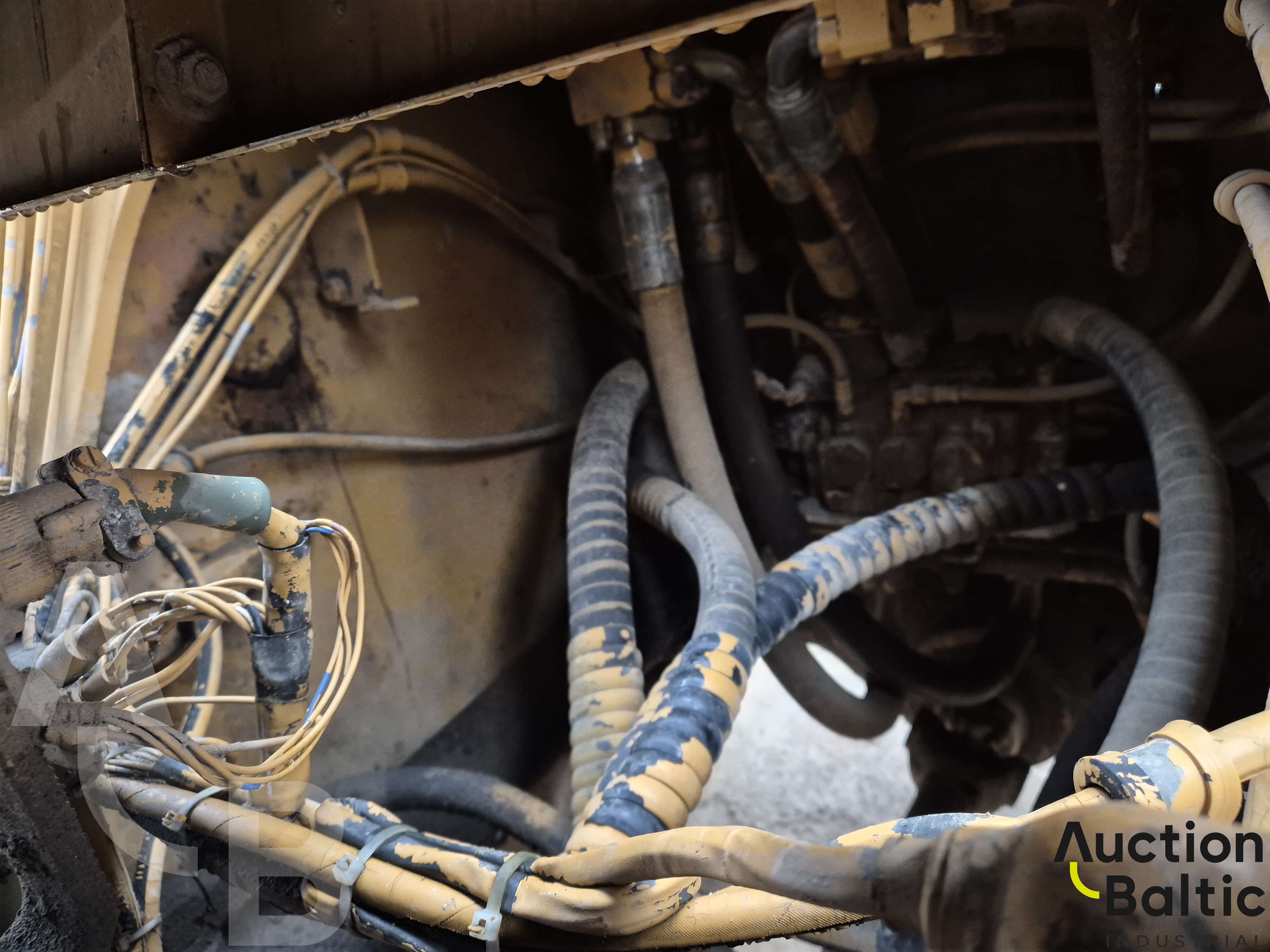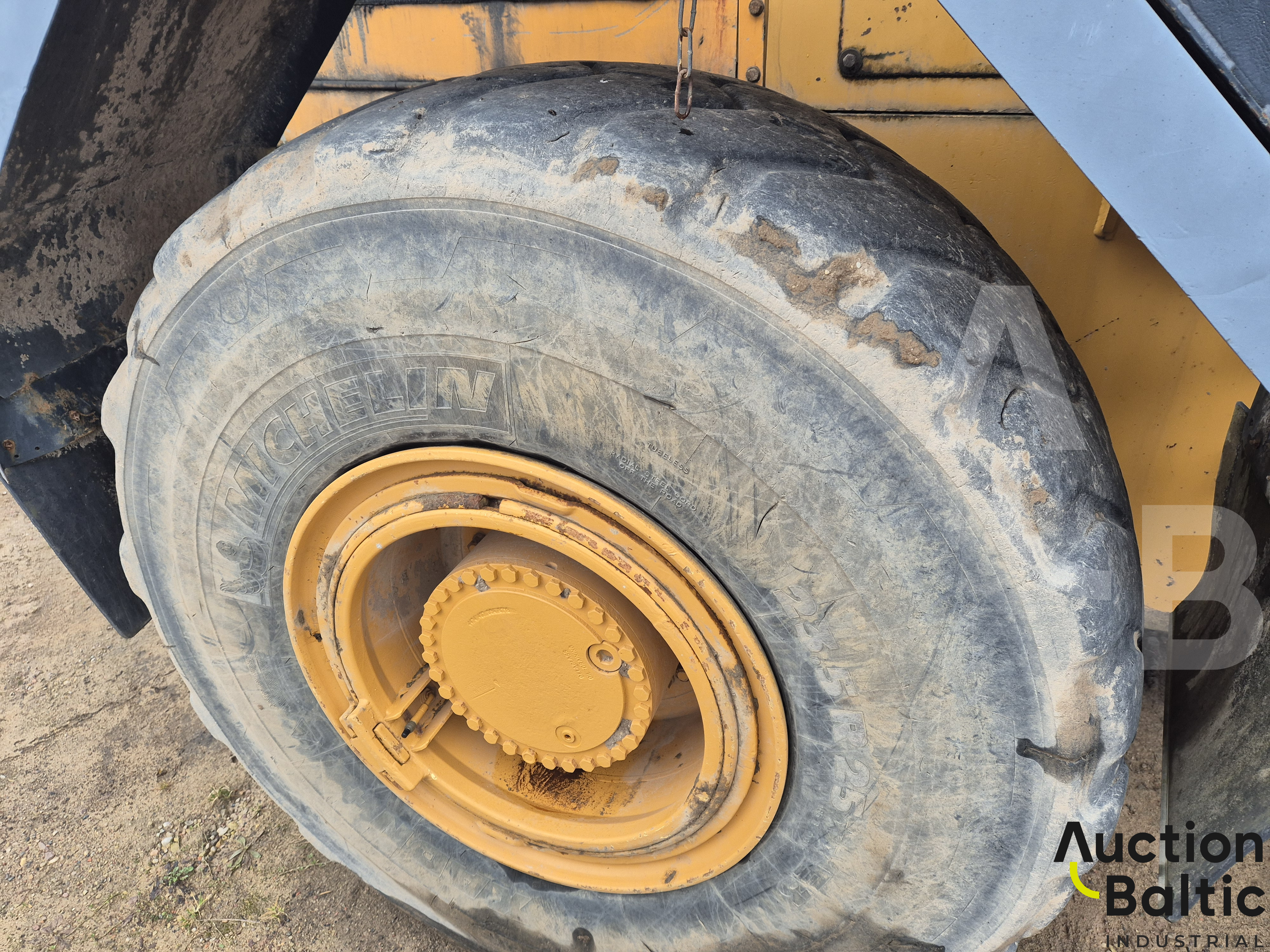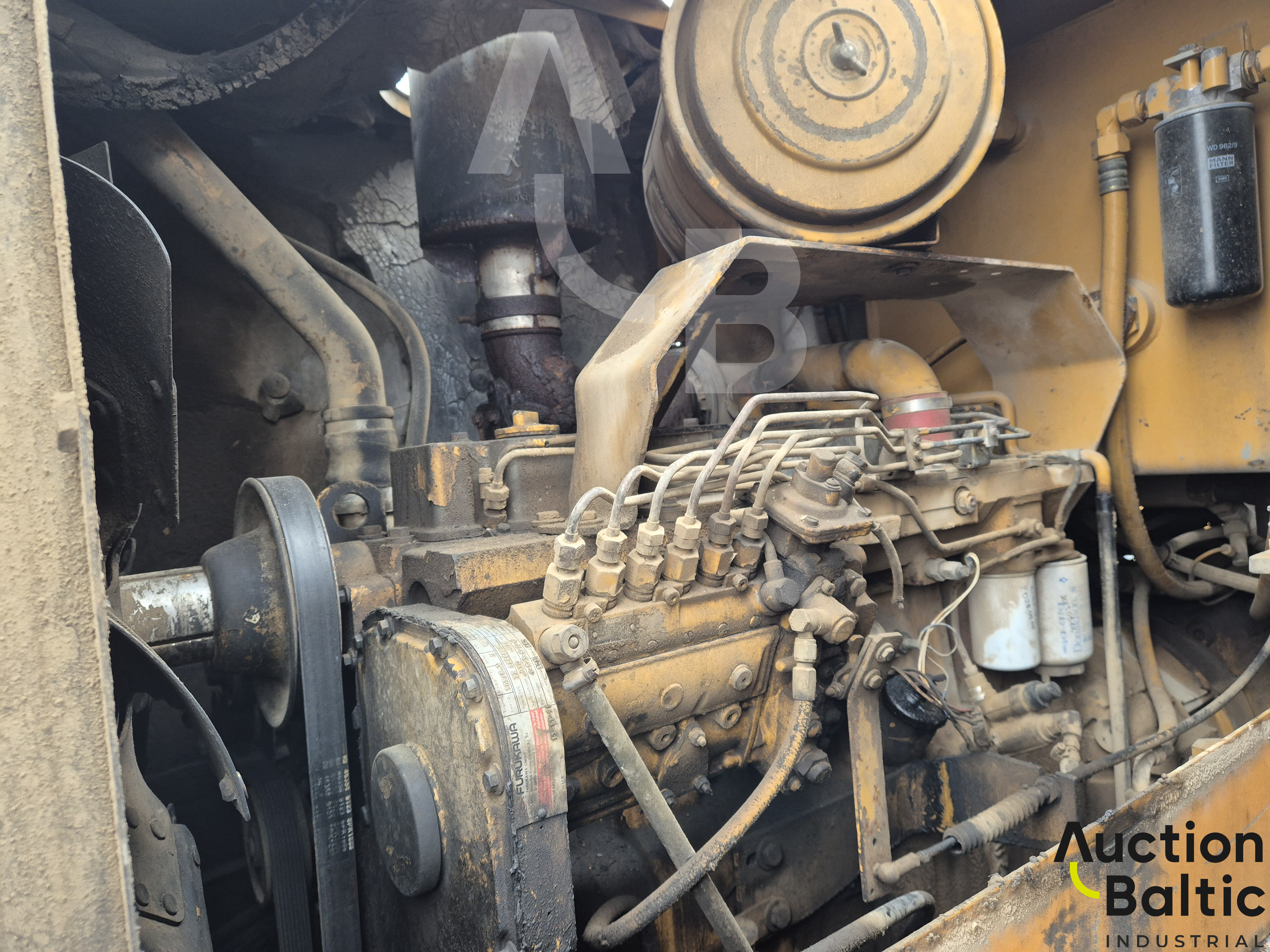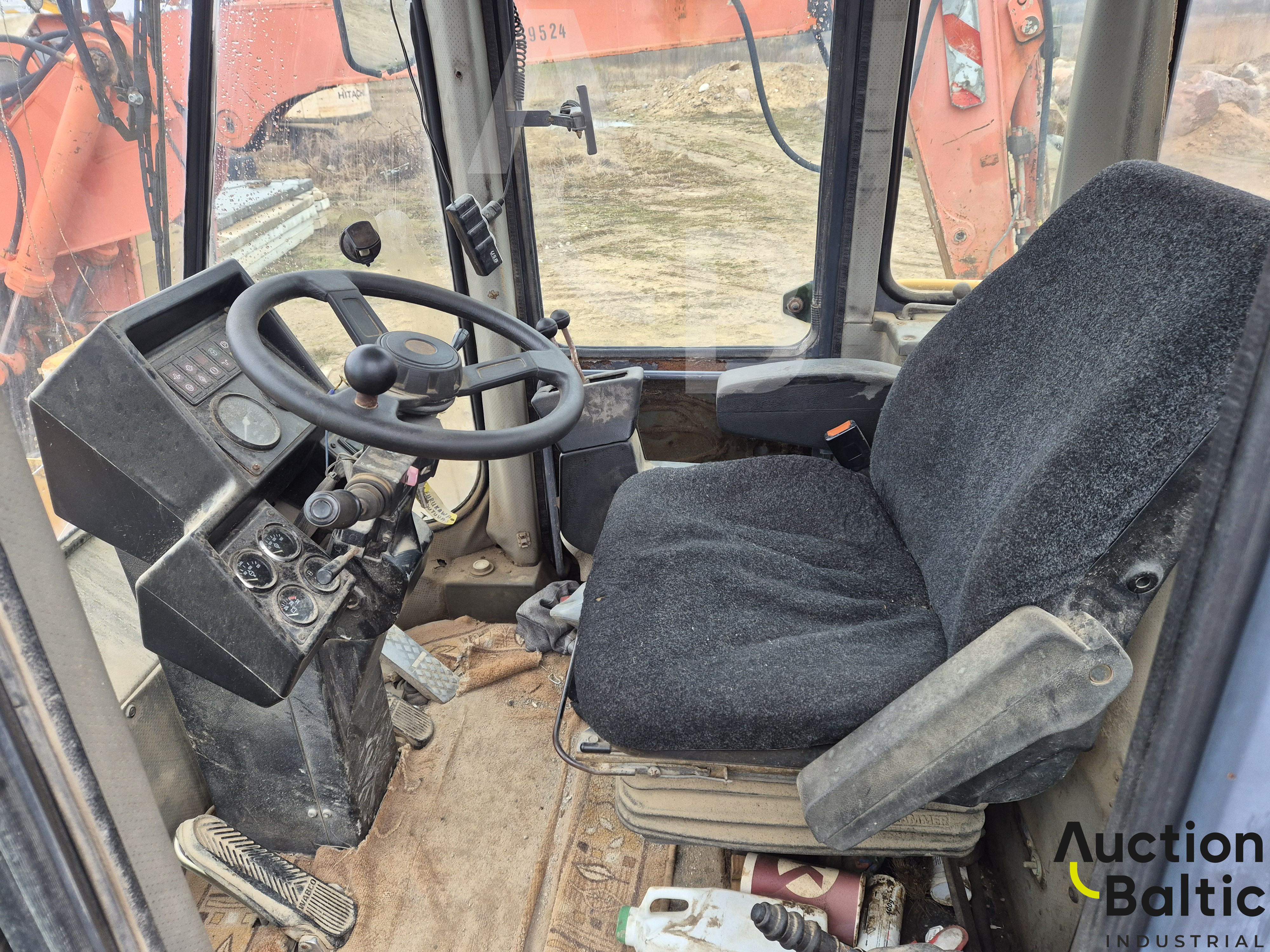 Frontalinis krautuvas su variklio defektu, bet kuriasi ir važiuoja.