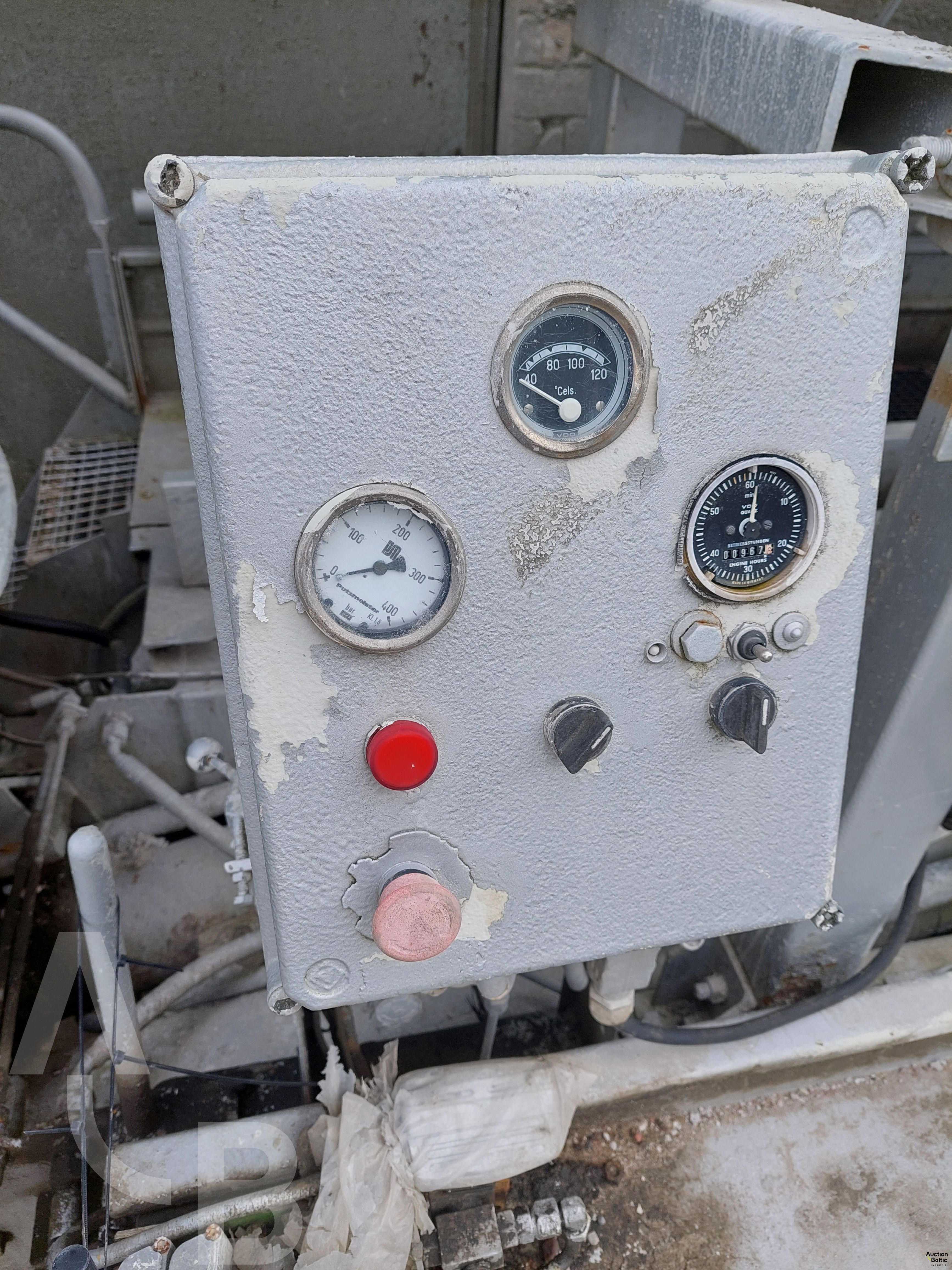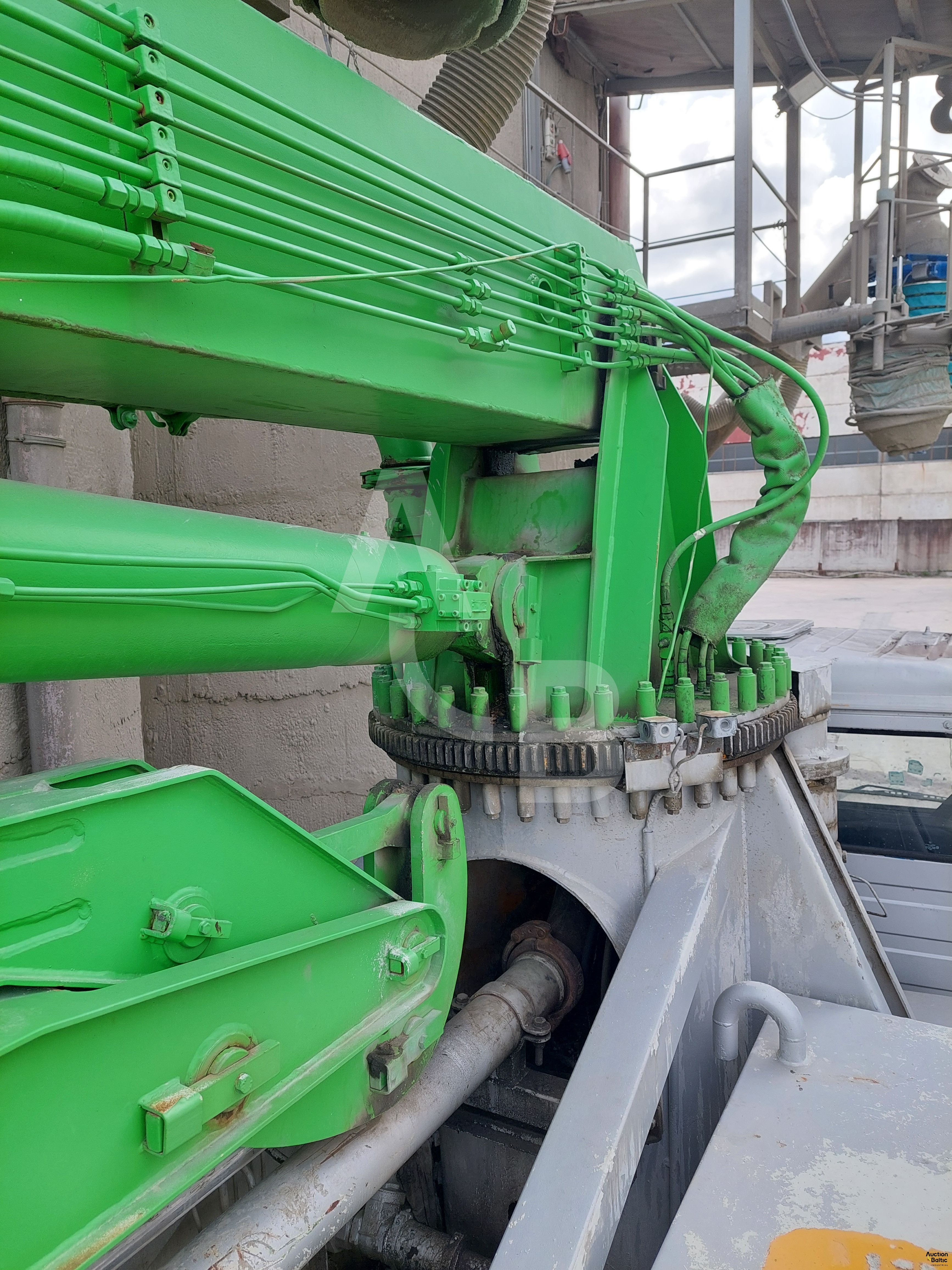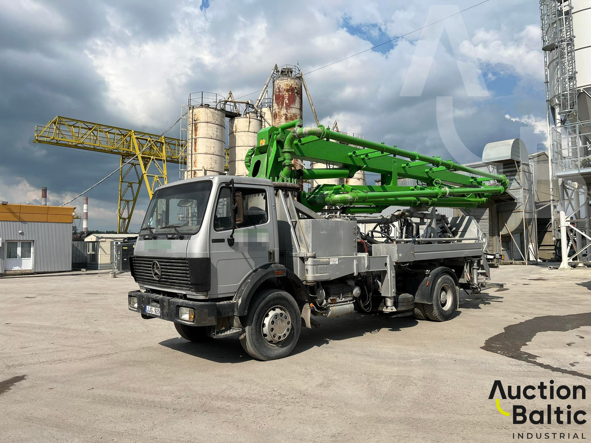 The truck with concrete pump is in working condition.