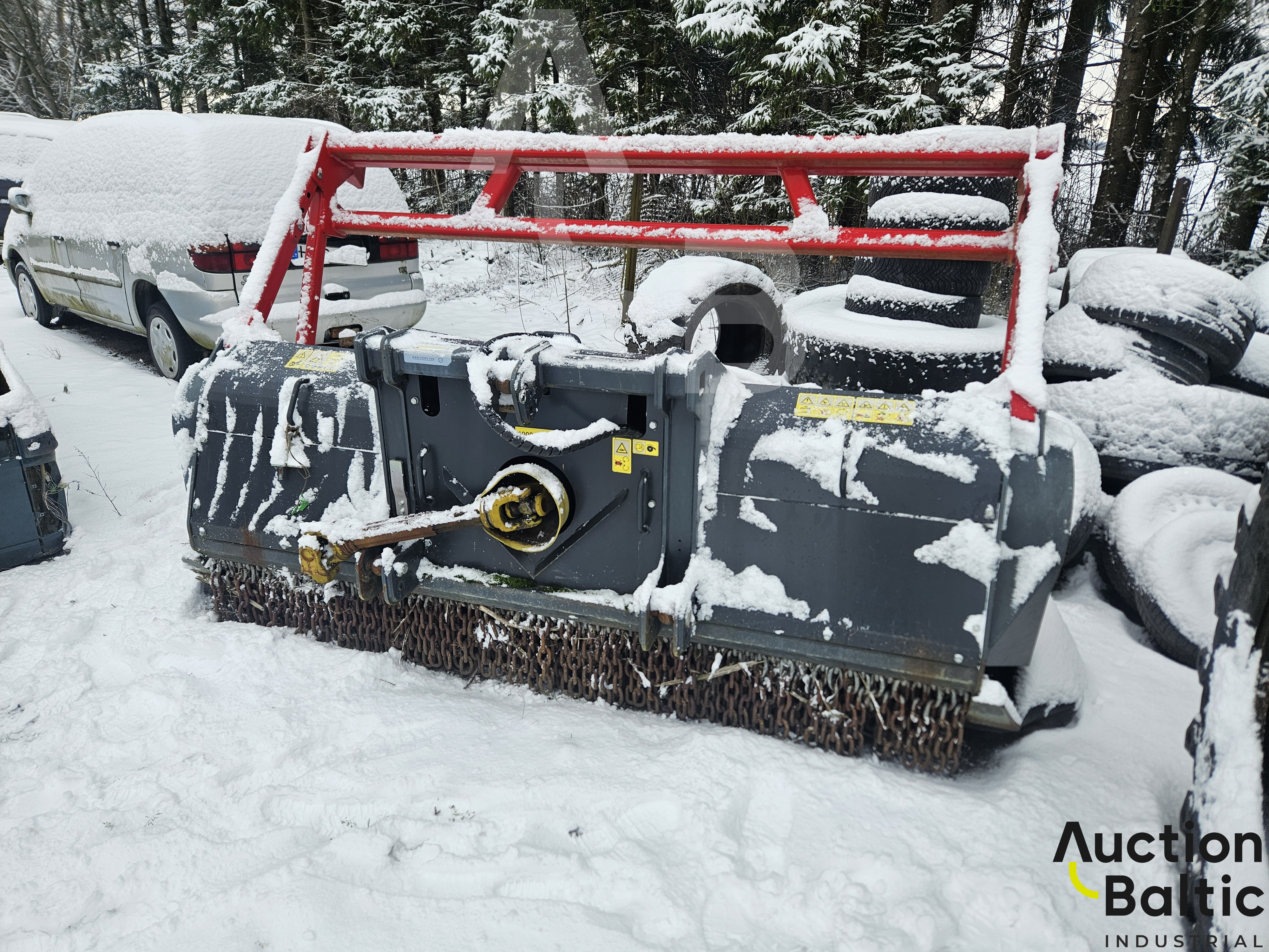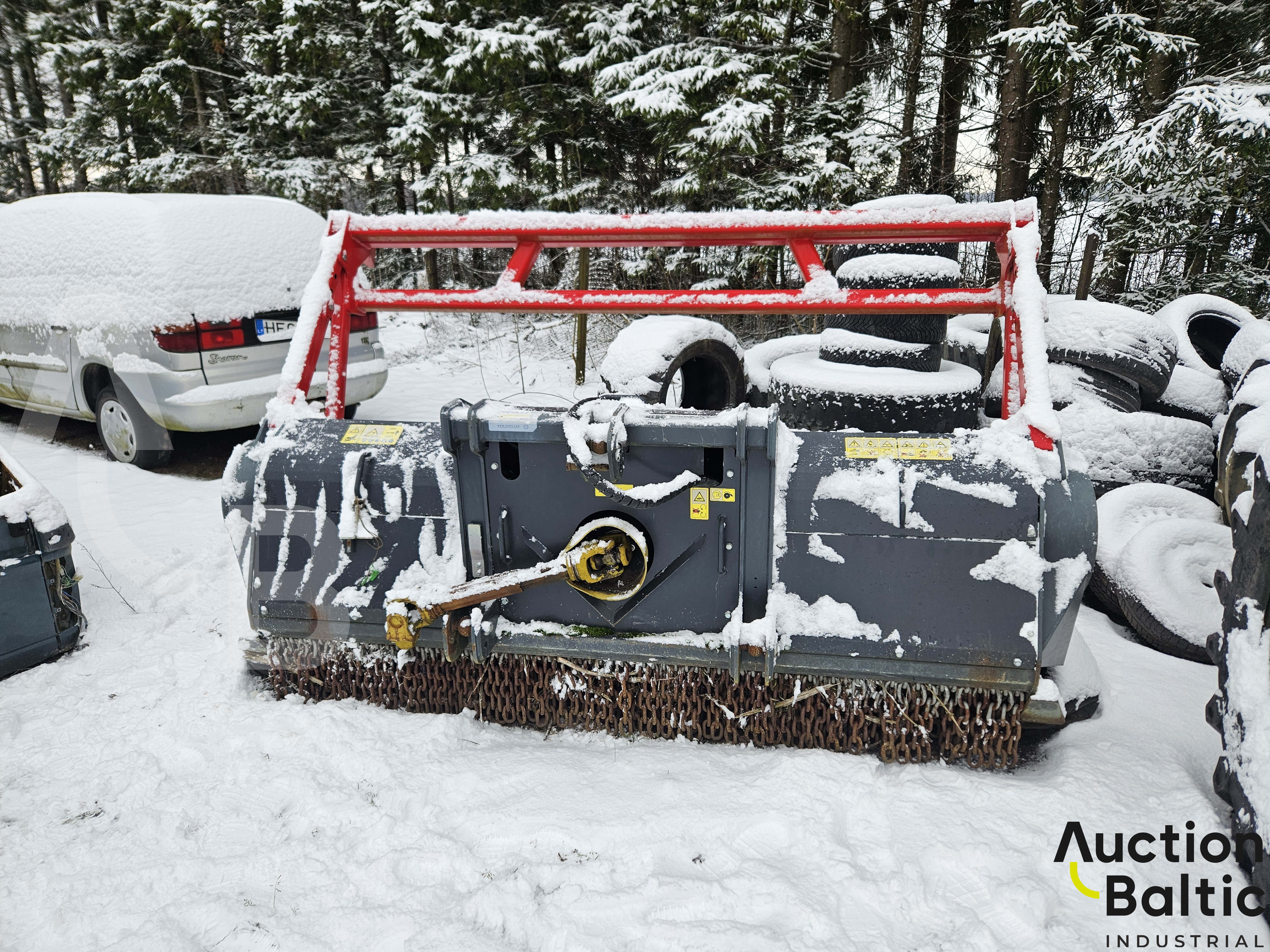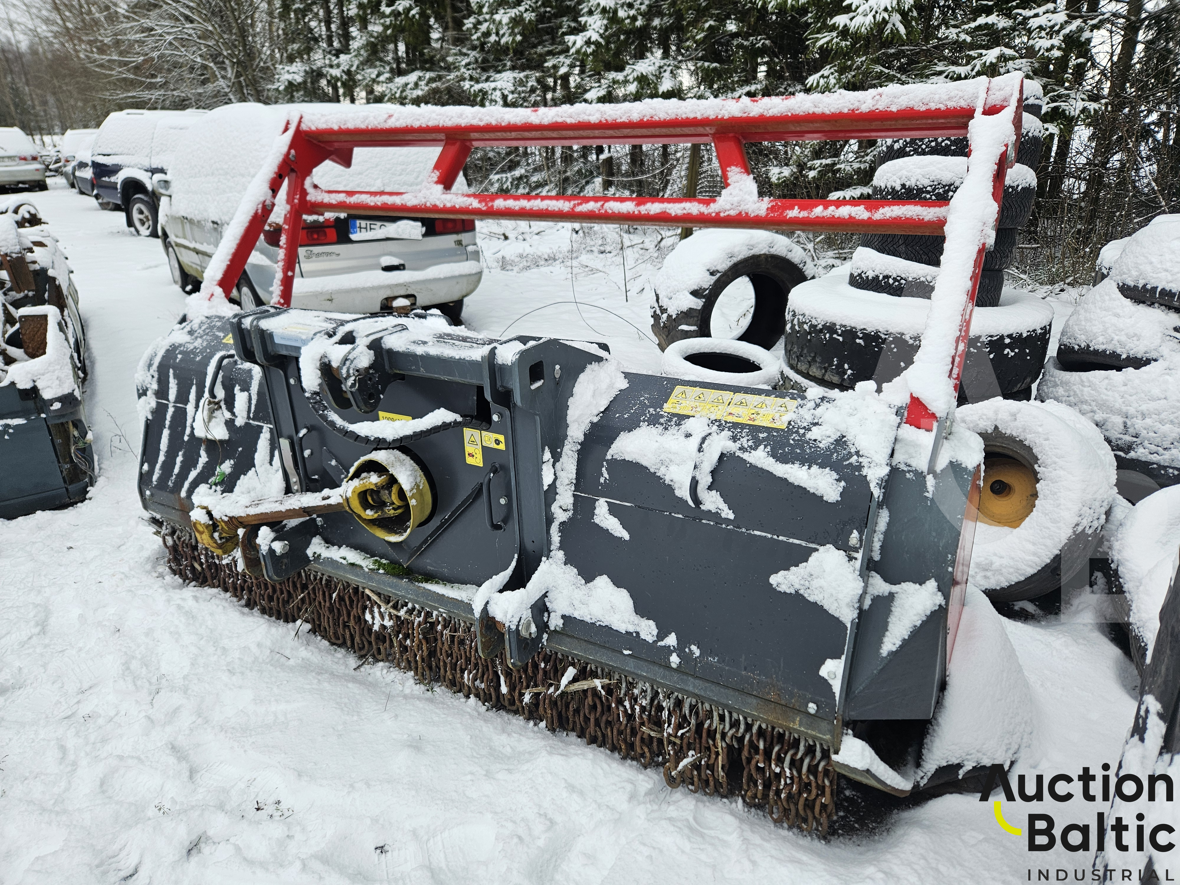 Grass and shrub shredder in working condition.