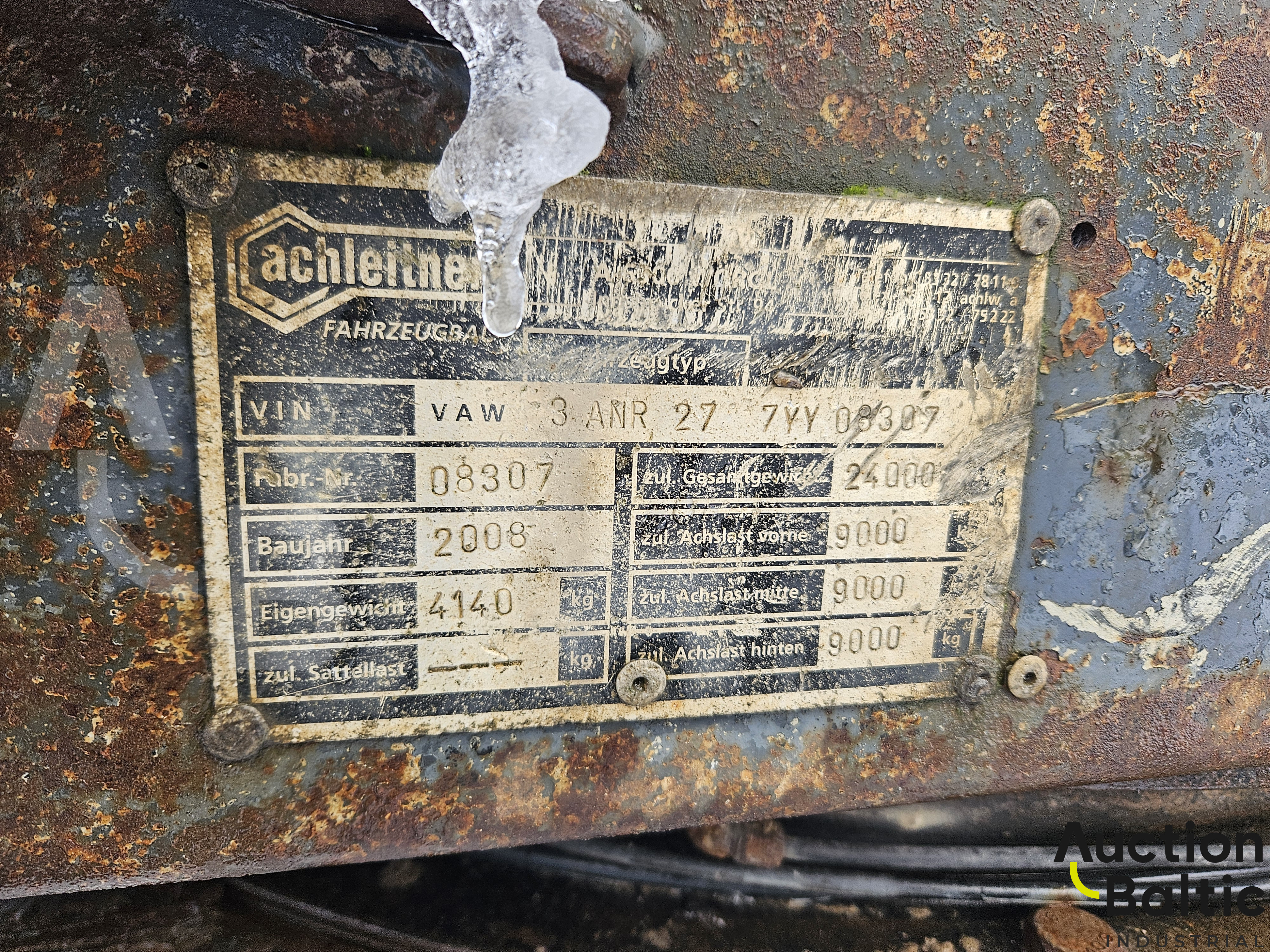 Trailer: Achleitner 3ANR27, year - 2008, weight - 4 140 kg, gross weight 27 000 kg, VIN:VAW3ANR277YY08307.