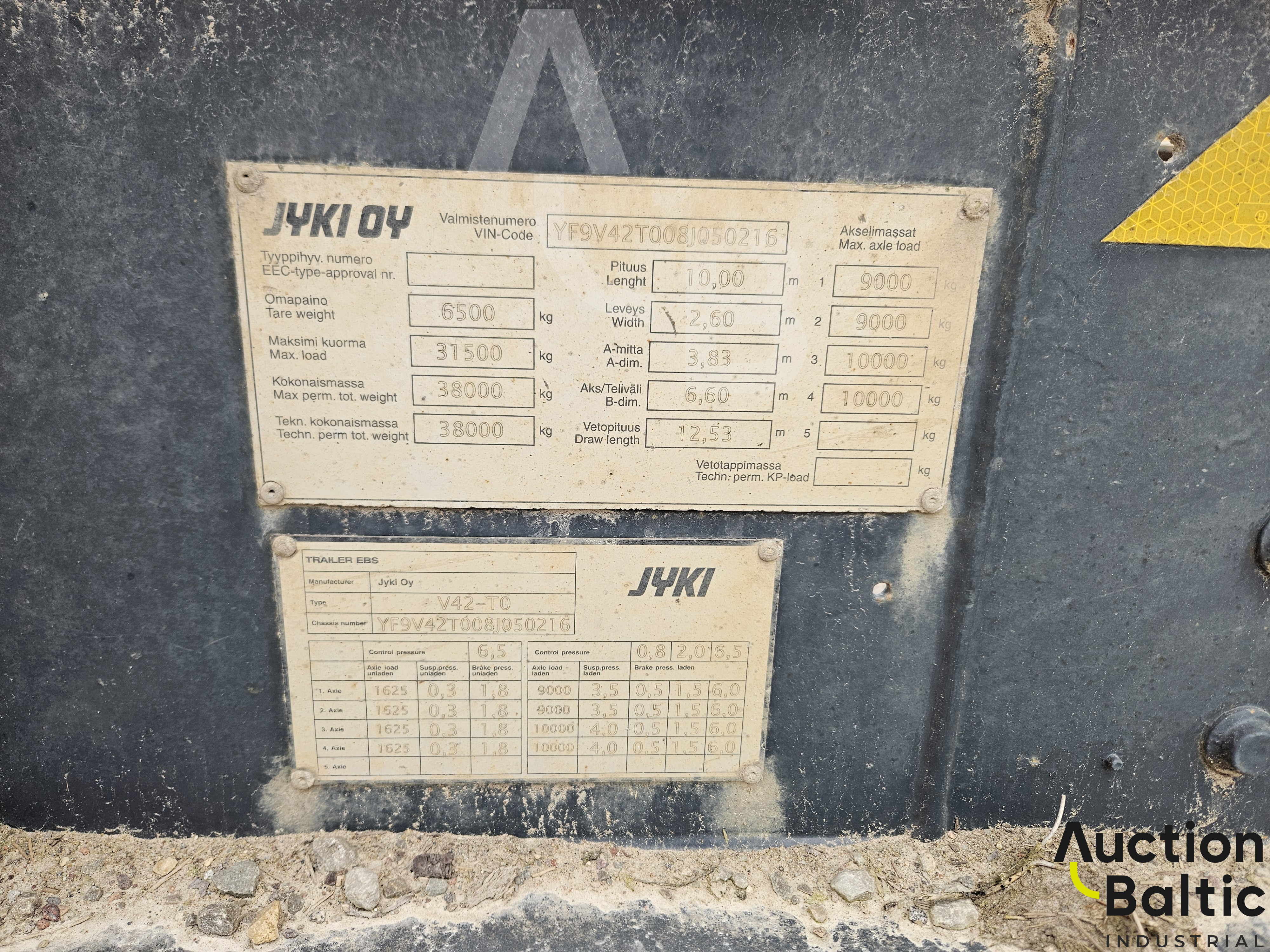 Trailer: Ovriga Jyki V42-T0, 2008 year, weight - 6 500 kg, gross weight - 38 000 kg, VIN: YF9V42T008J050216, disc breaks.