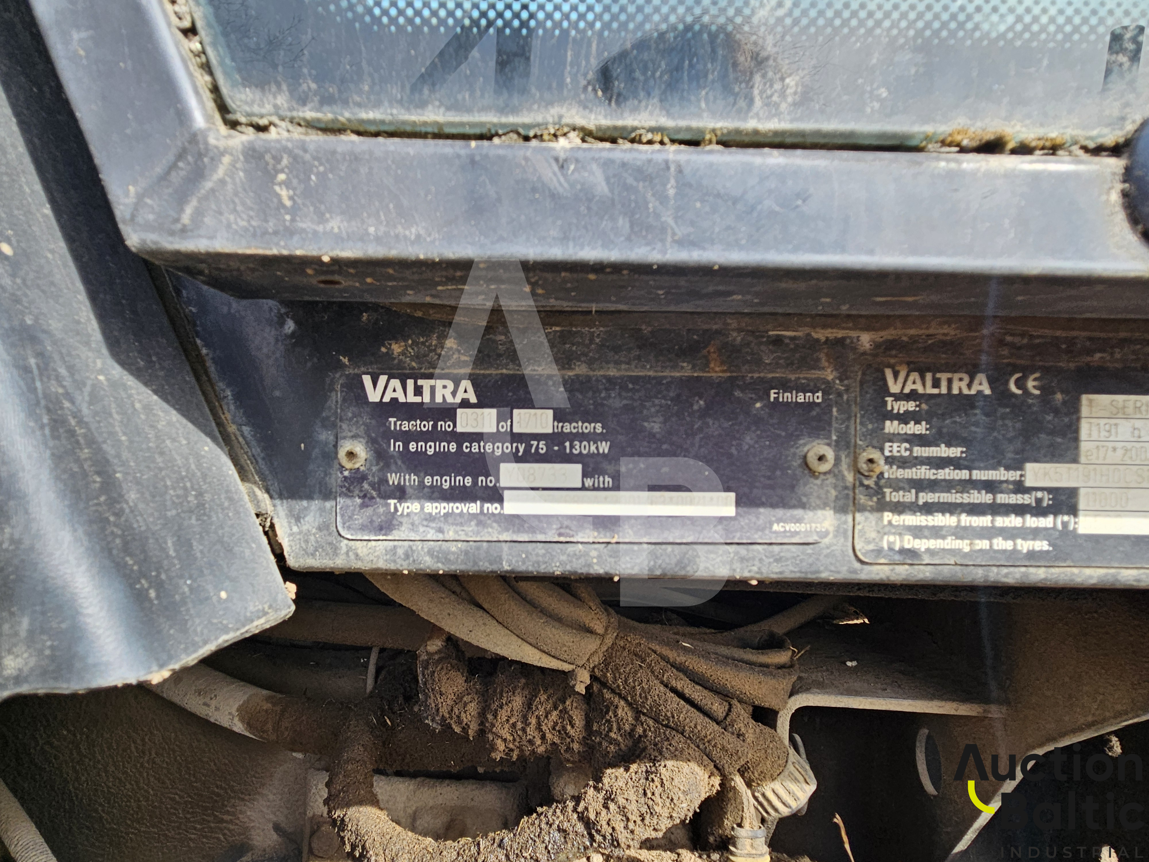 Tractor Valtra T191H, year 2012, 129 kW, 6420 kg with registration documents. Moto hours at the description are from tractor.