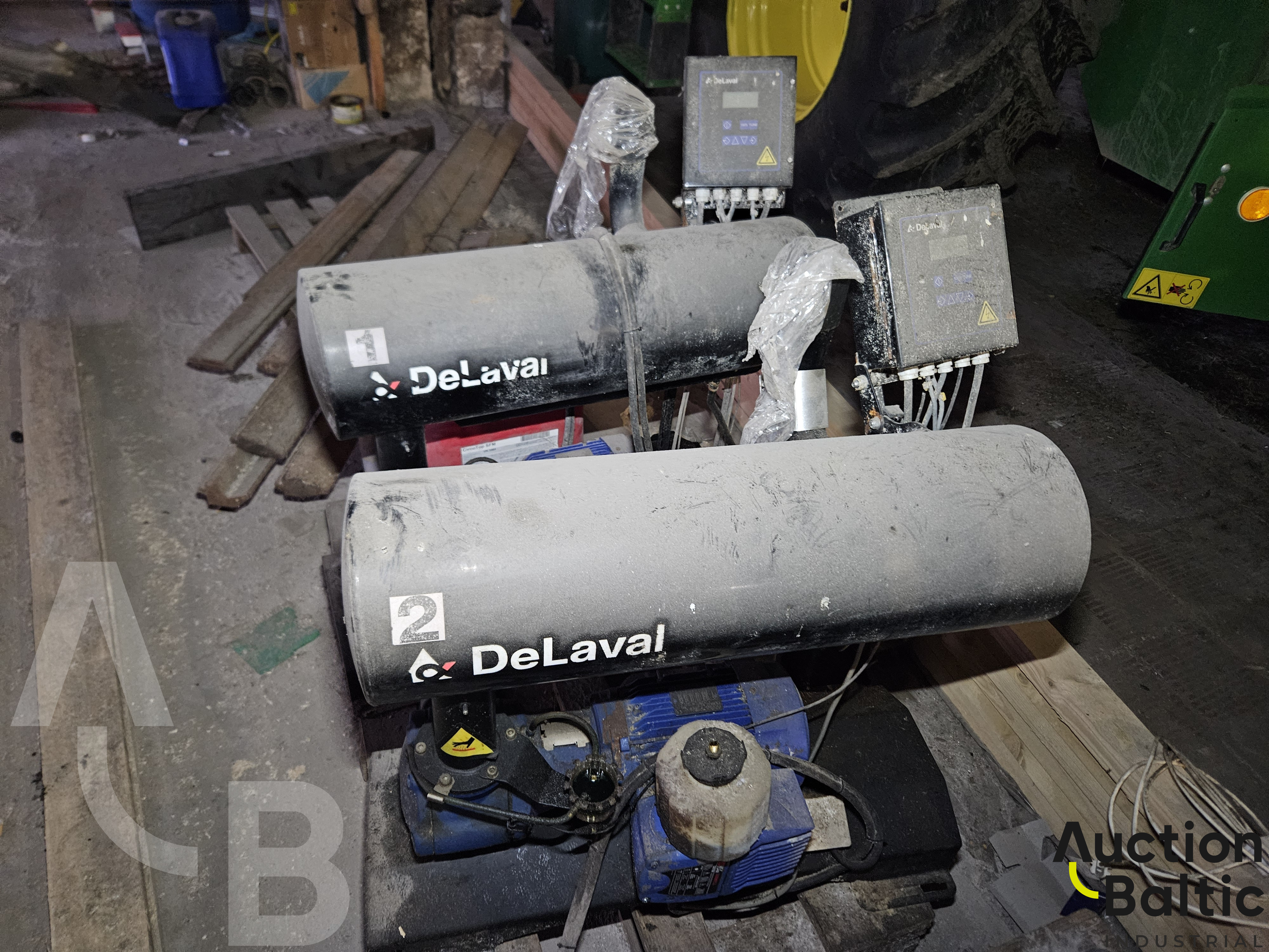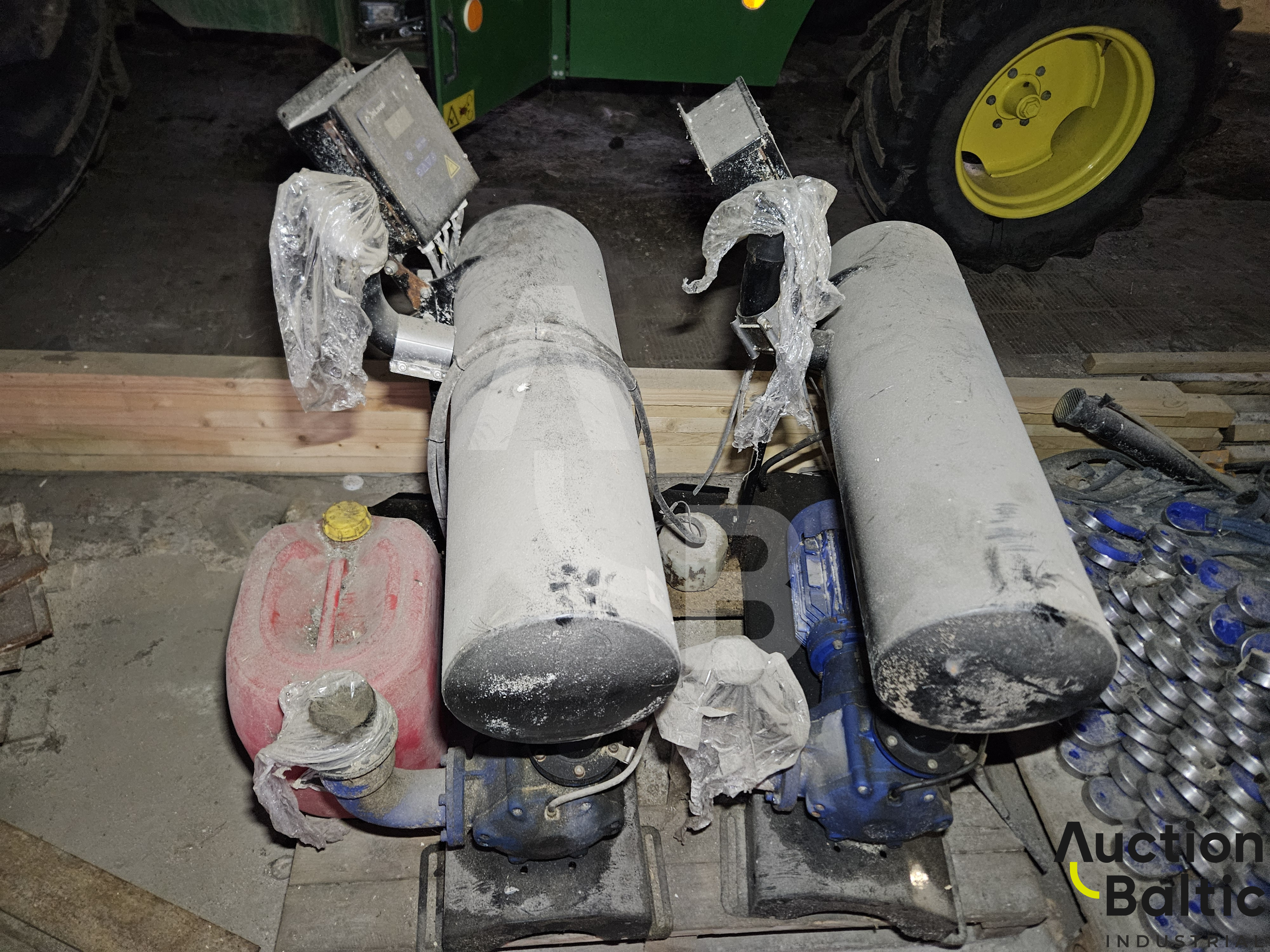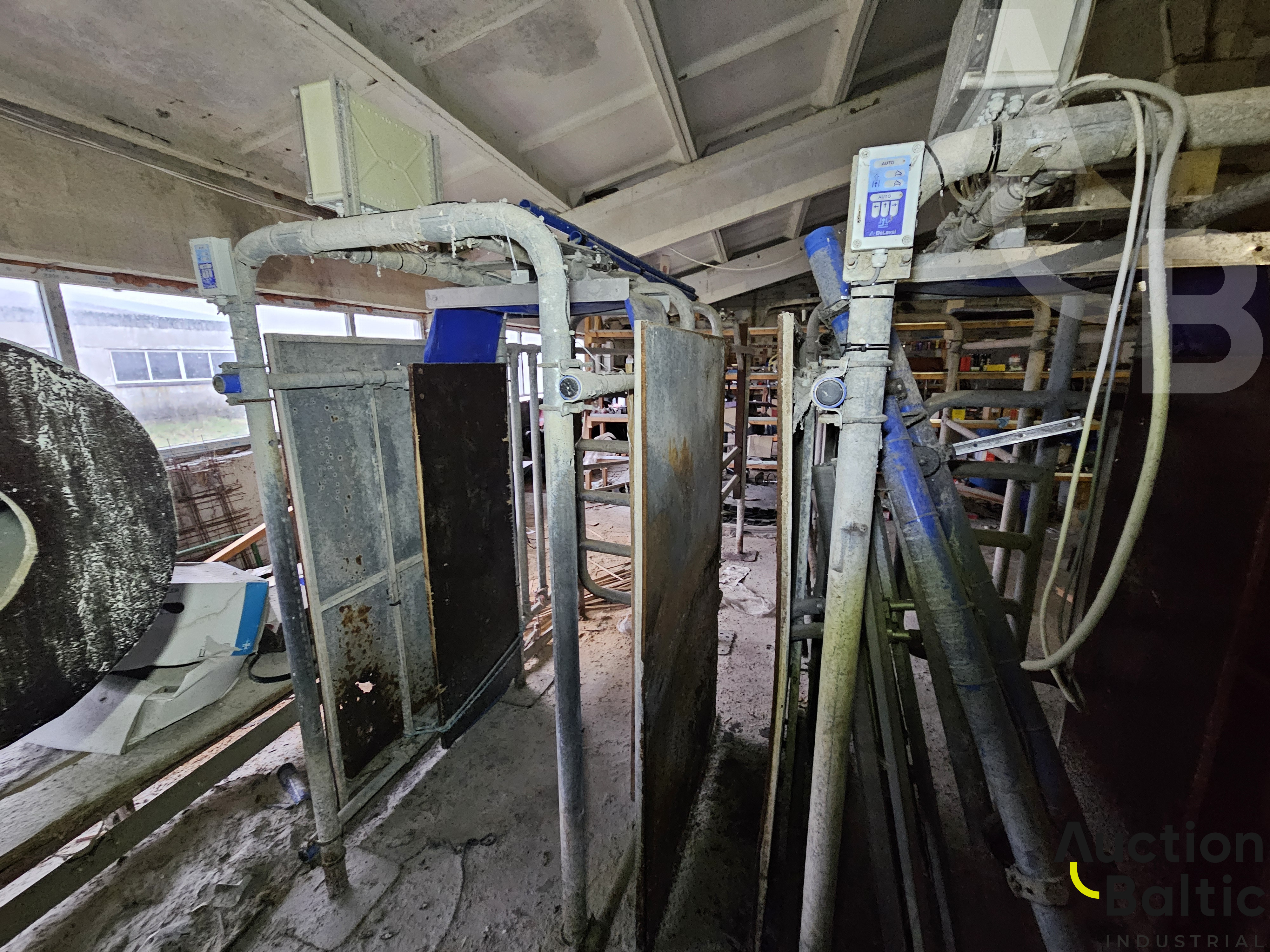 Pilnas rinkinys. 2 vienetai melžimo robotų, 2 vienetai išmaniųjų melžimų vartų, vakumai, kompresorius, blogo pieno linijos, valdymo kompiuteris ir kitos dalys matomos nuotraukose.