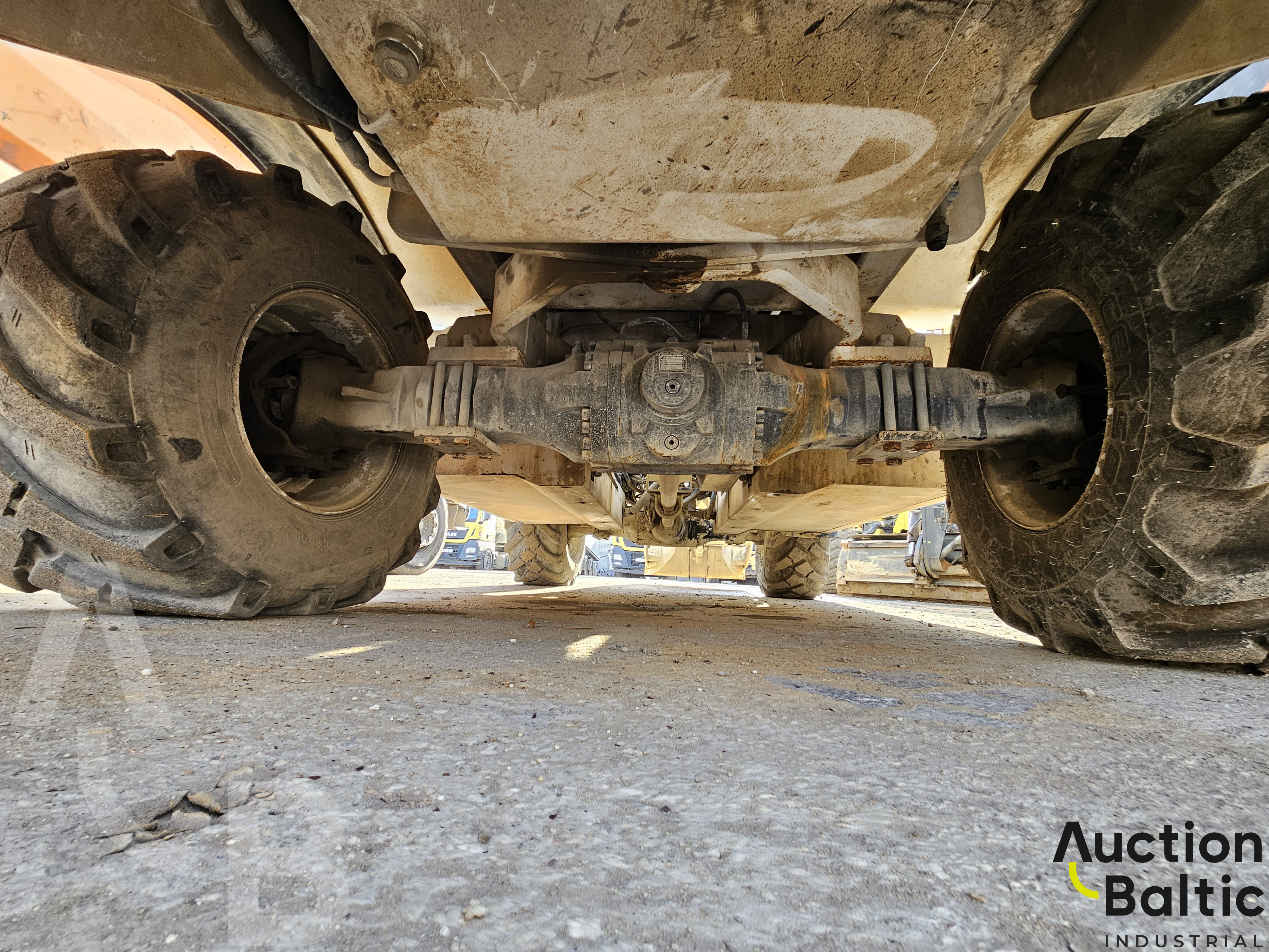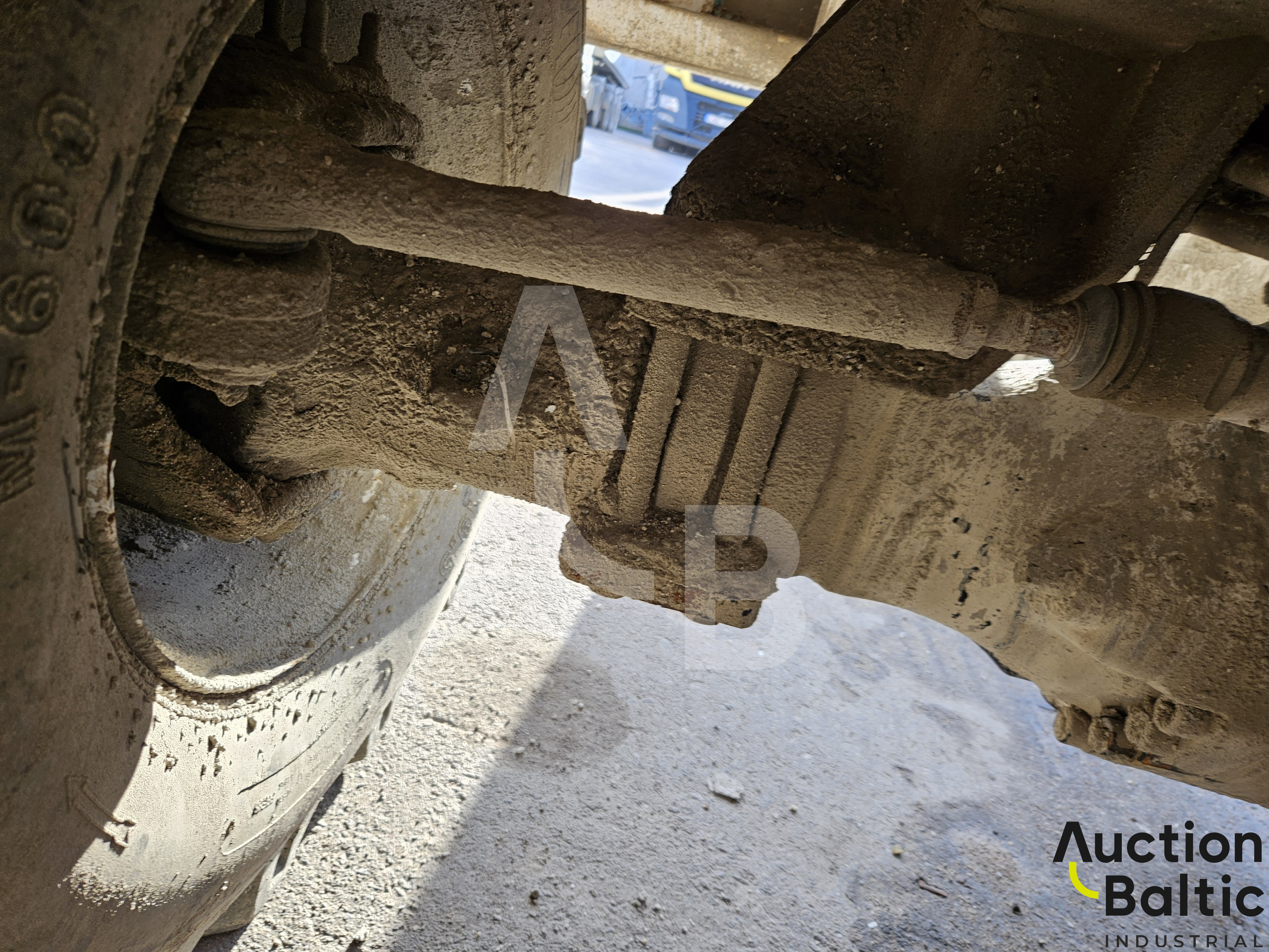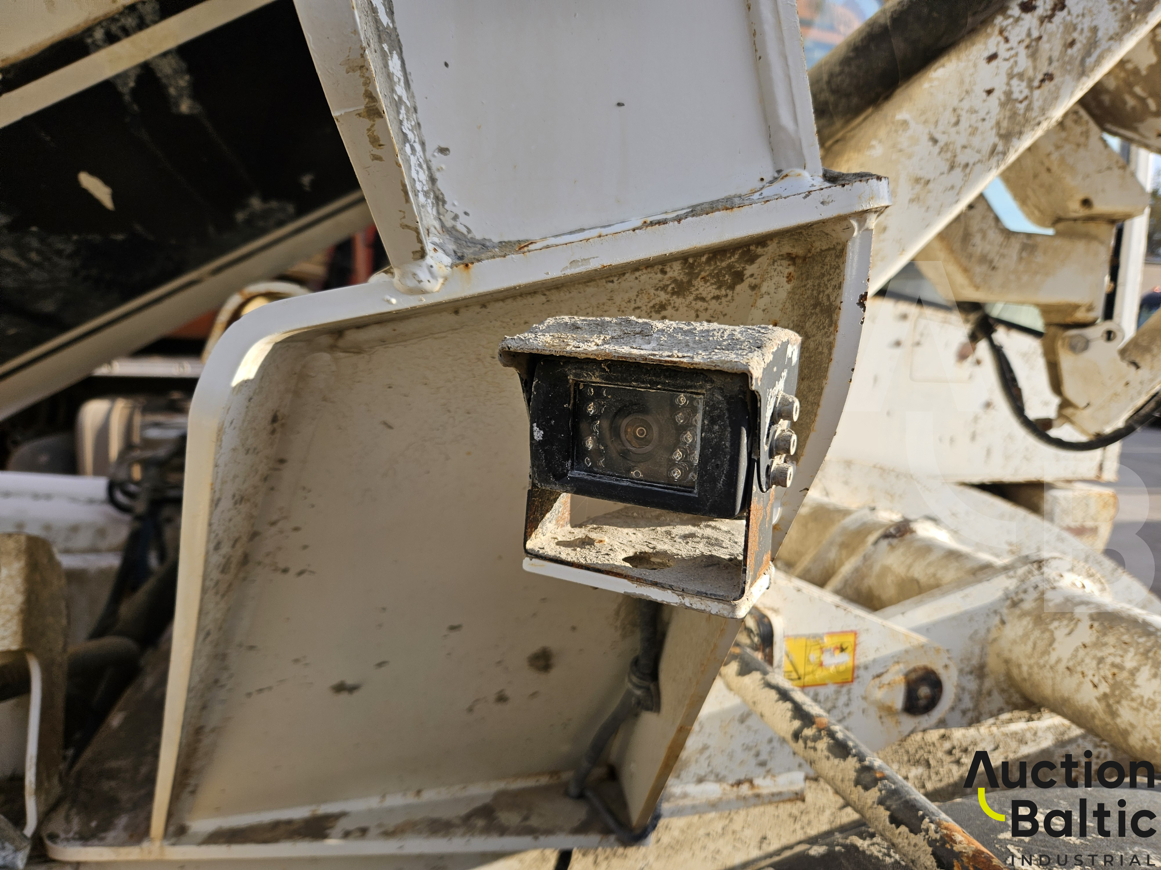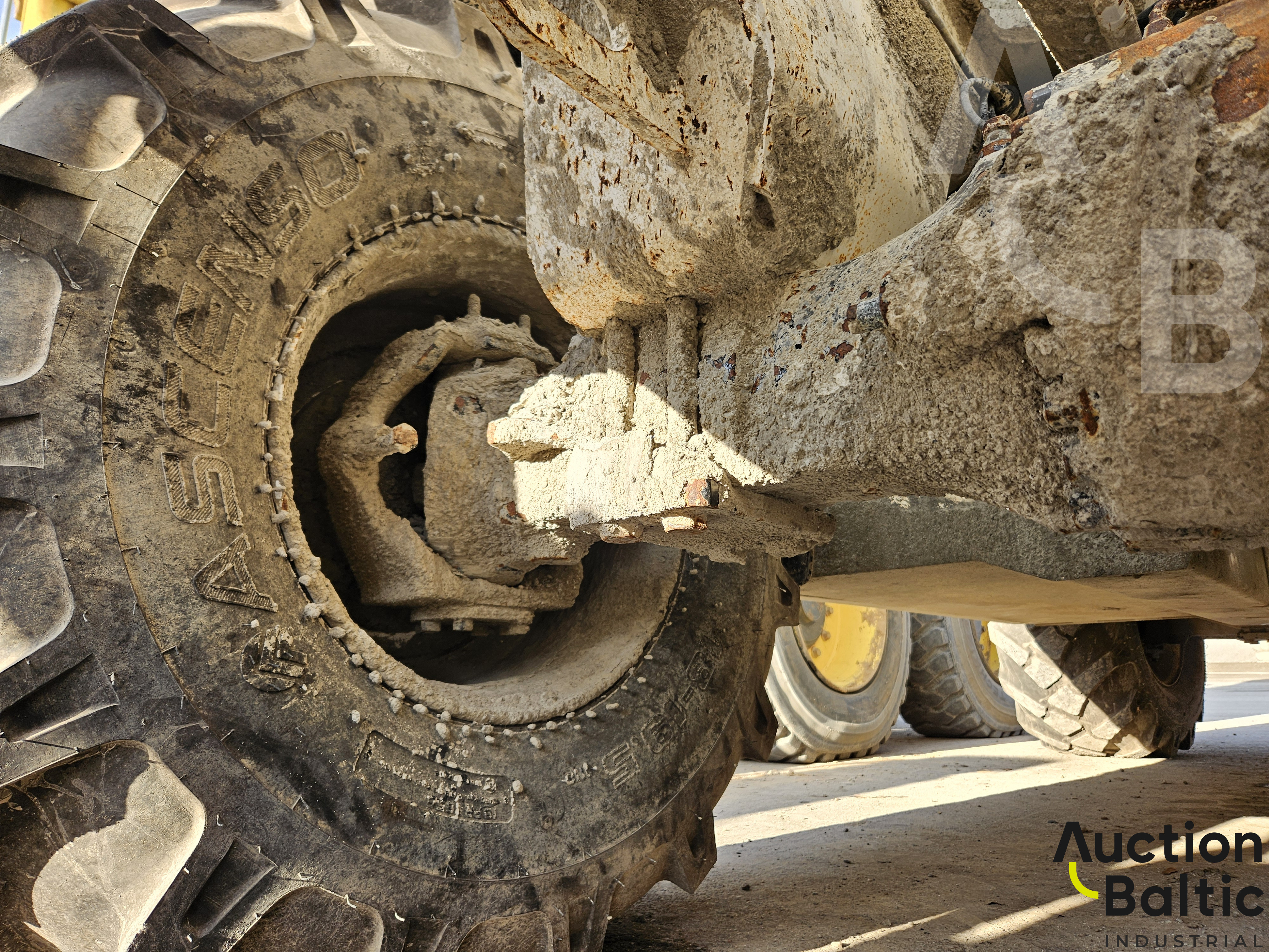 Self-propelled concrete mixer is in working condition.