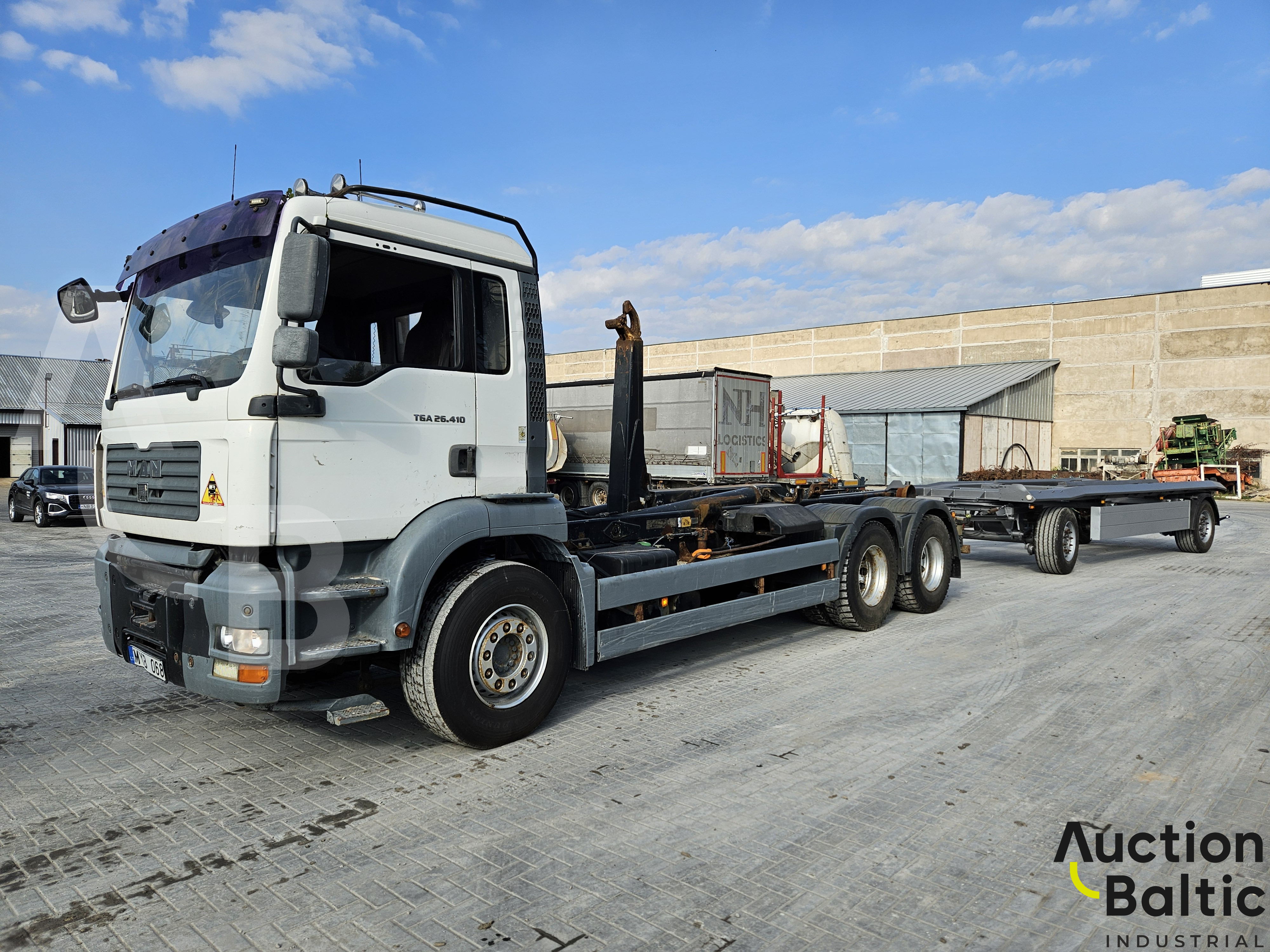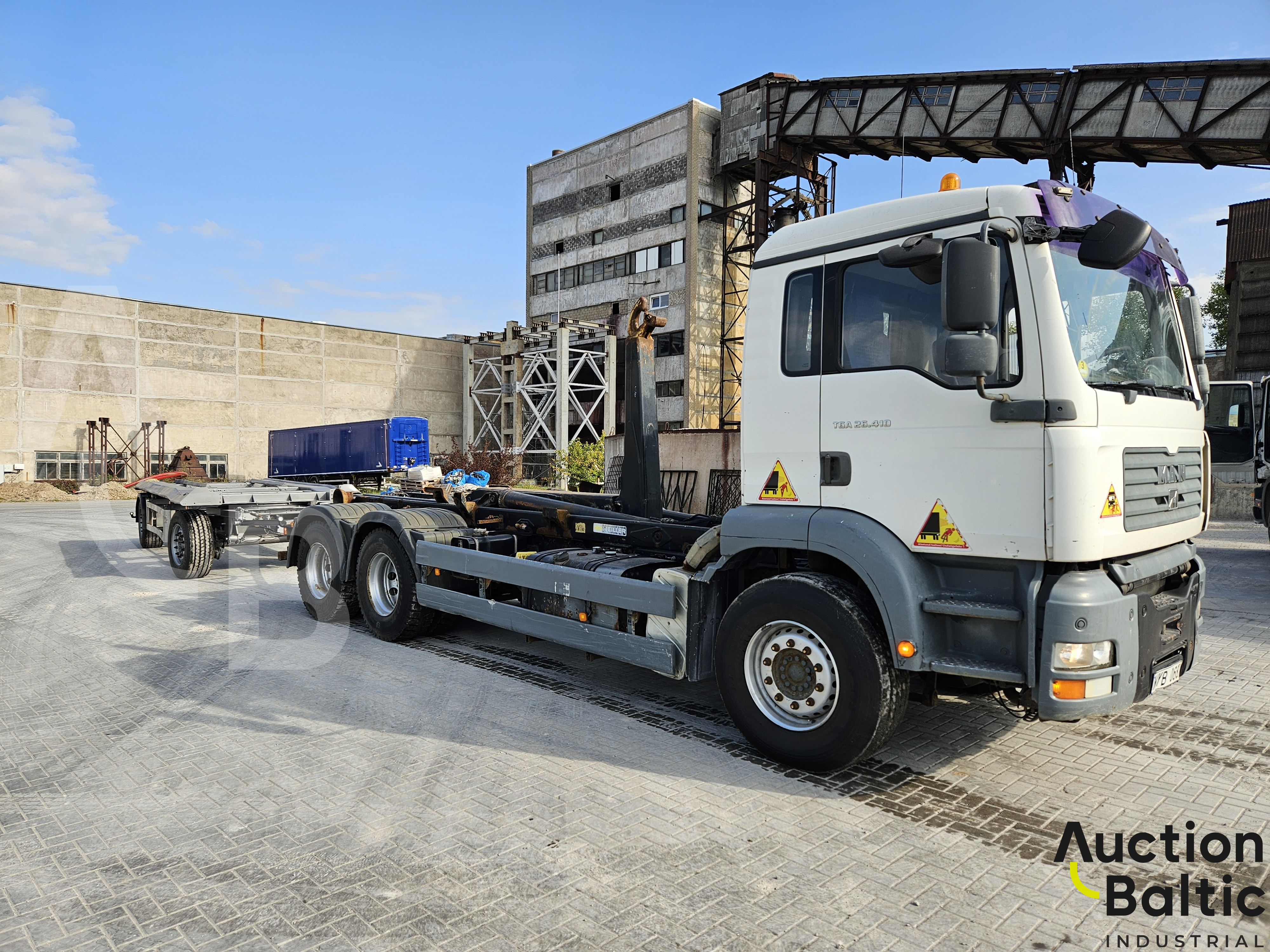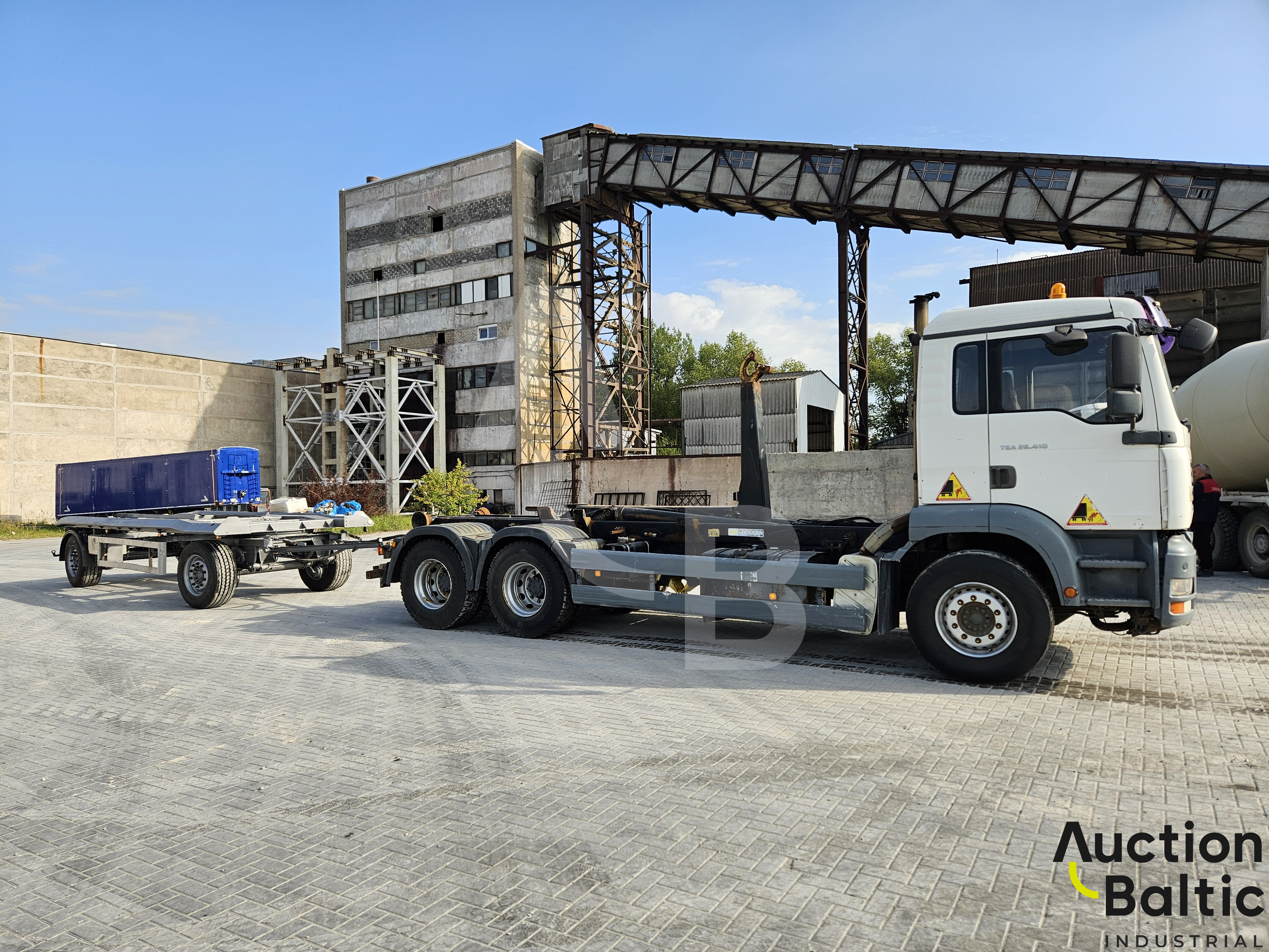 Sunkvežimis su liftiniu kabliu darbinės būklės.
