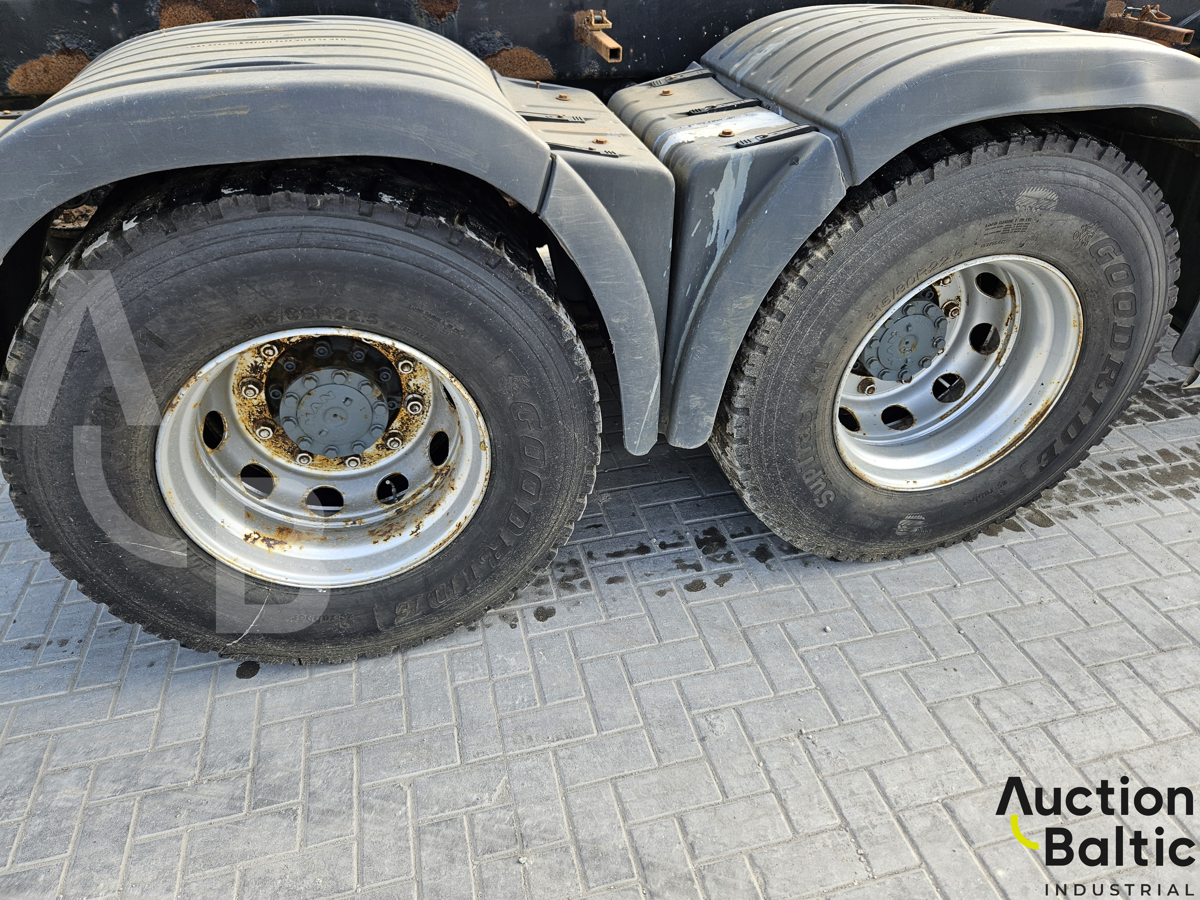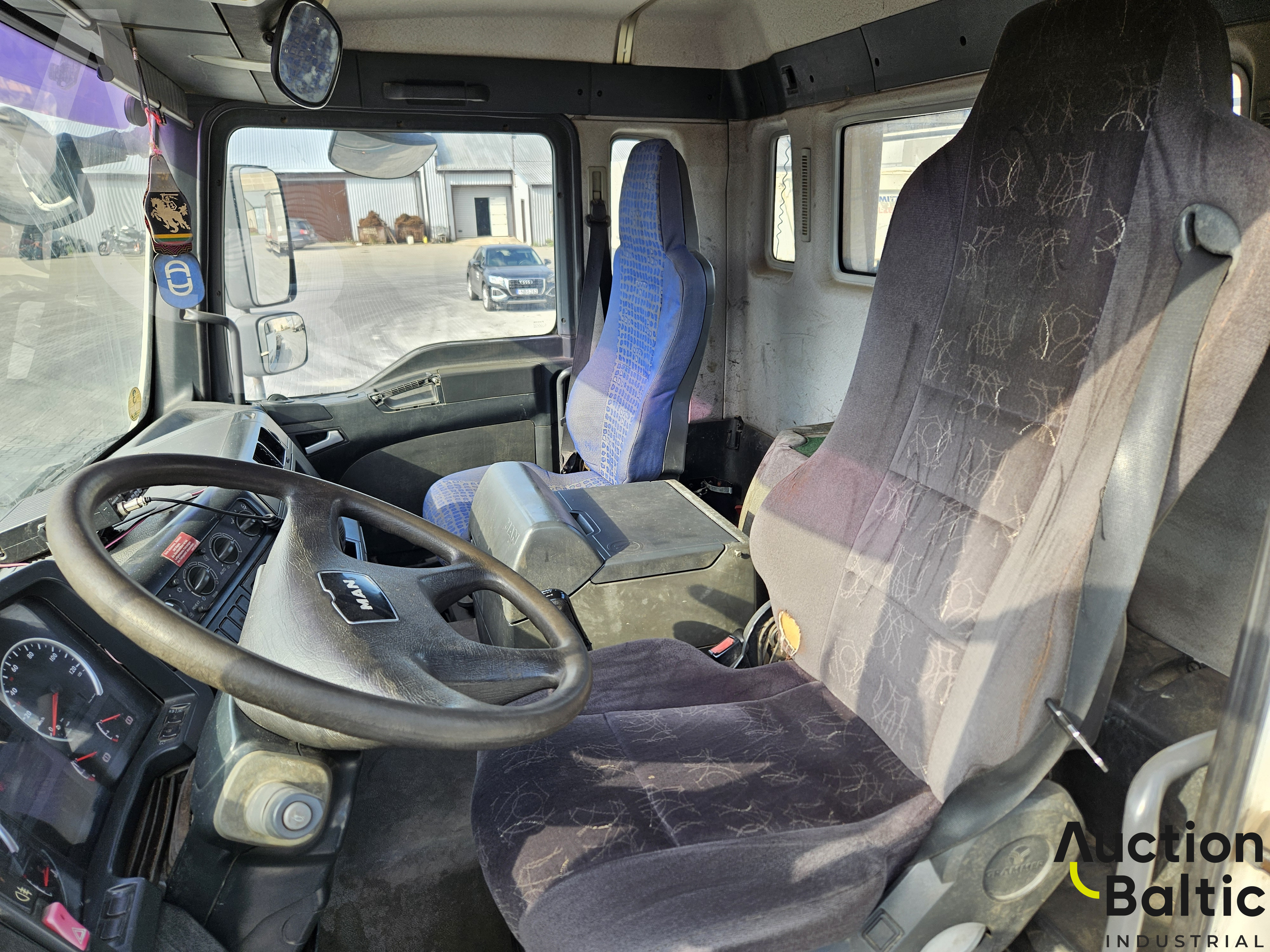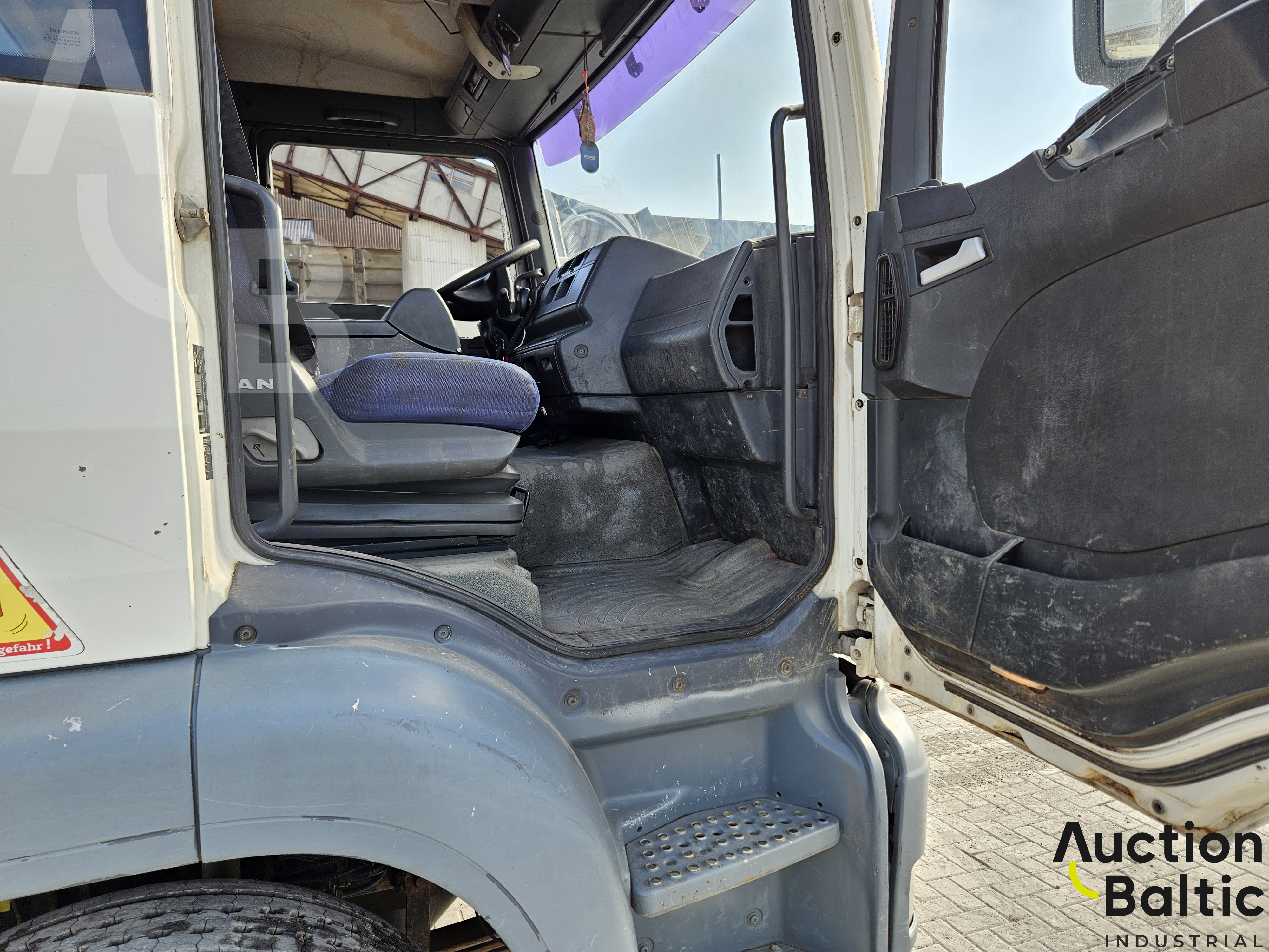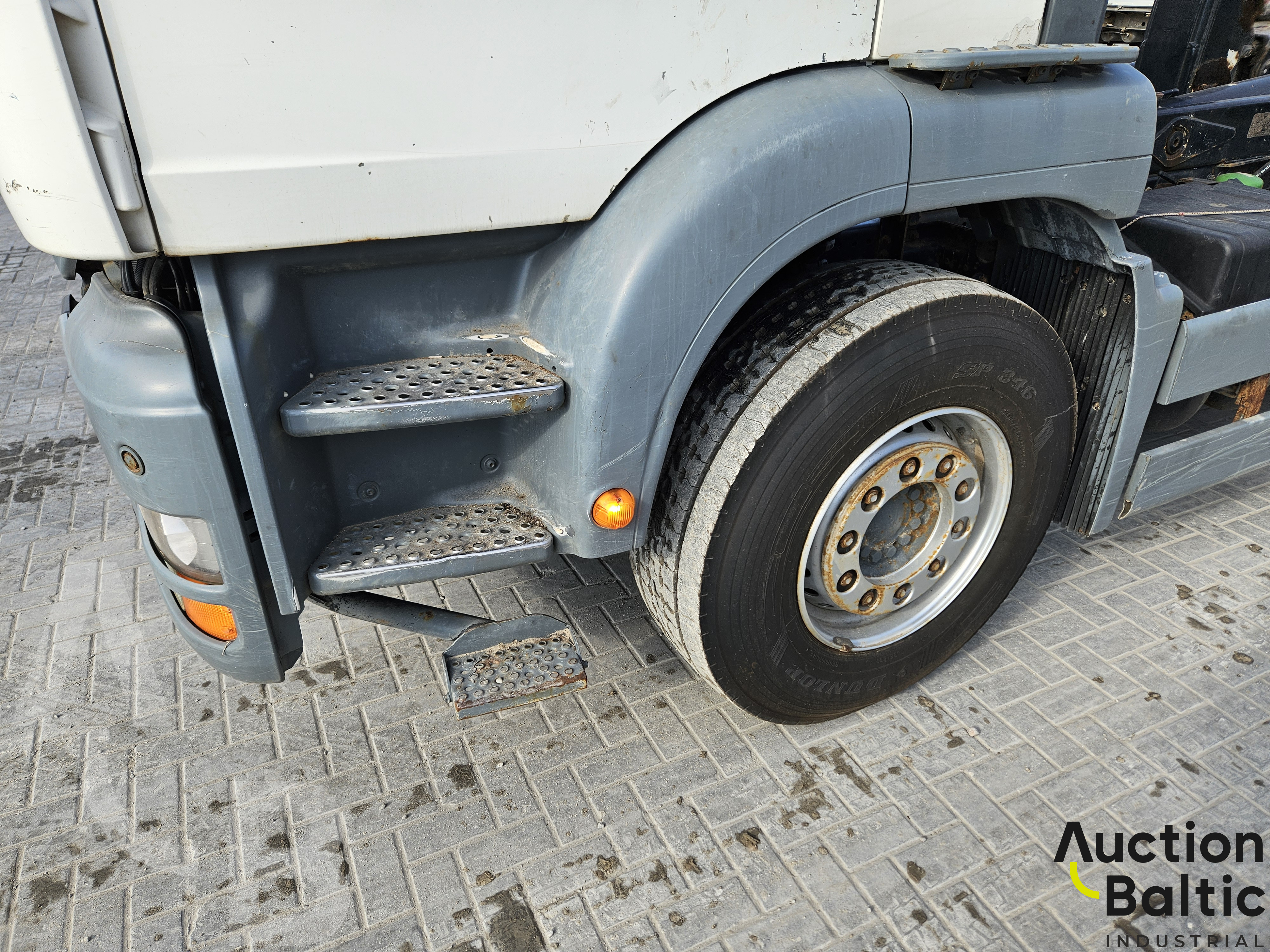 Sunkvežimis su liftiniu kabliu darbinės būklės.