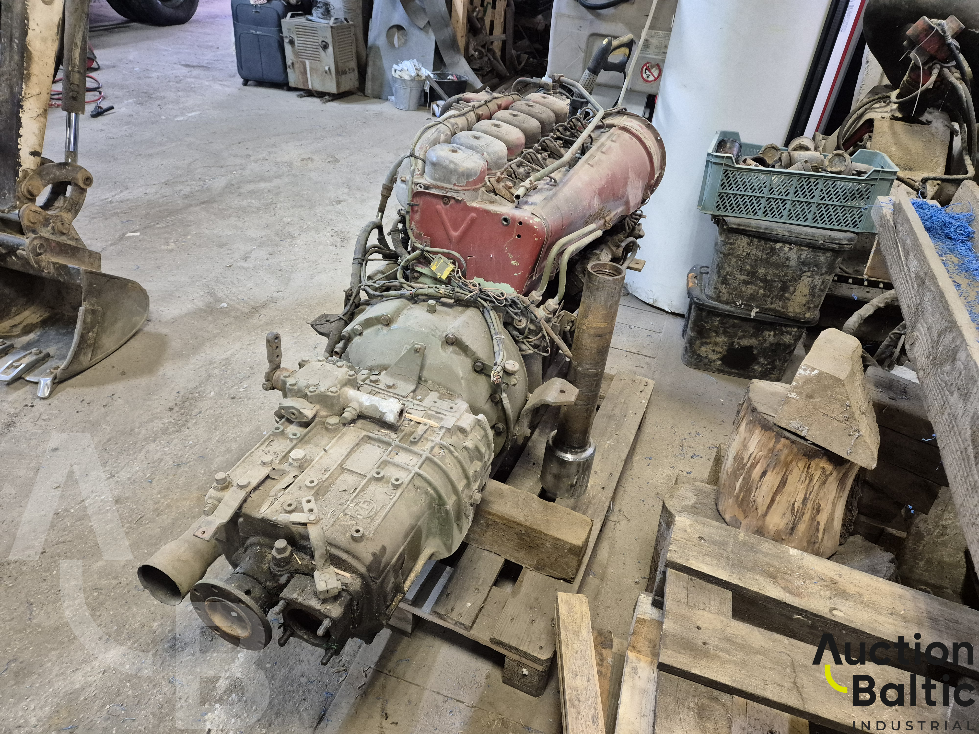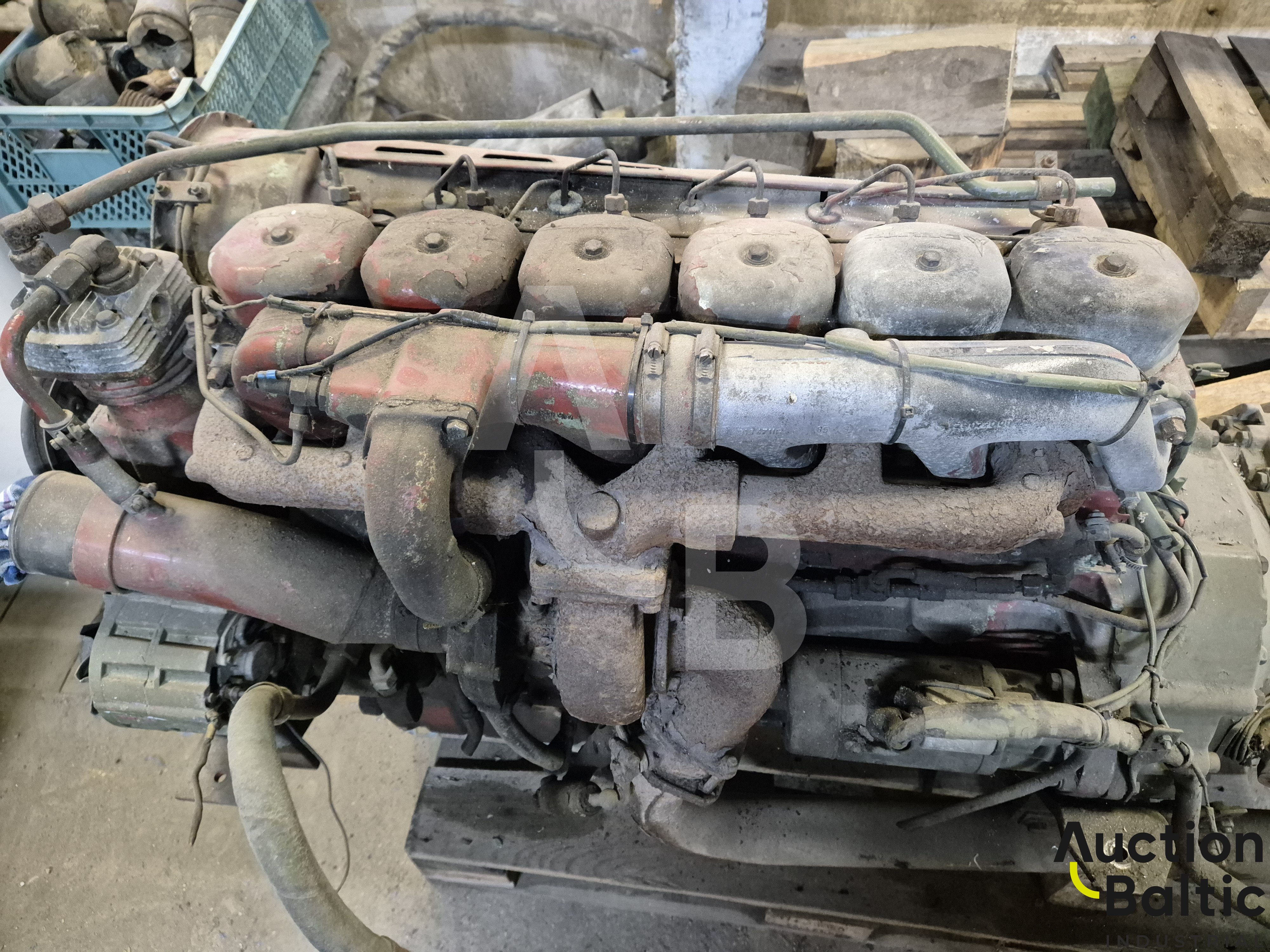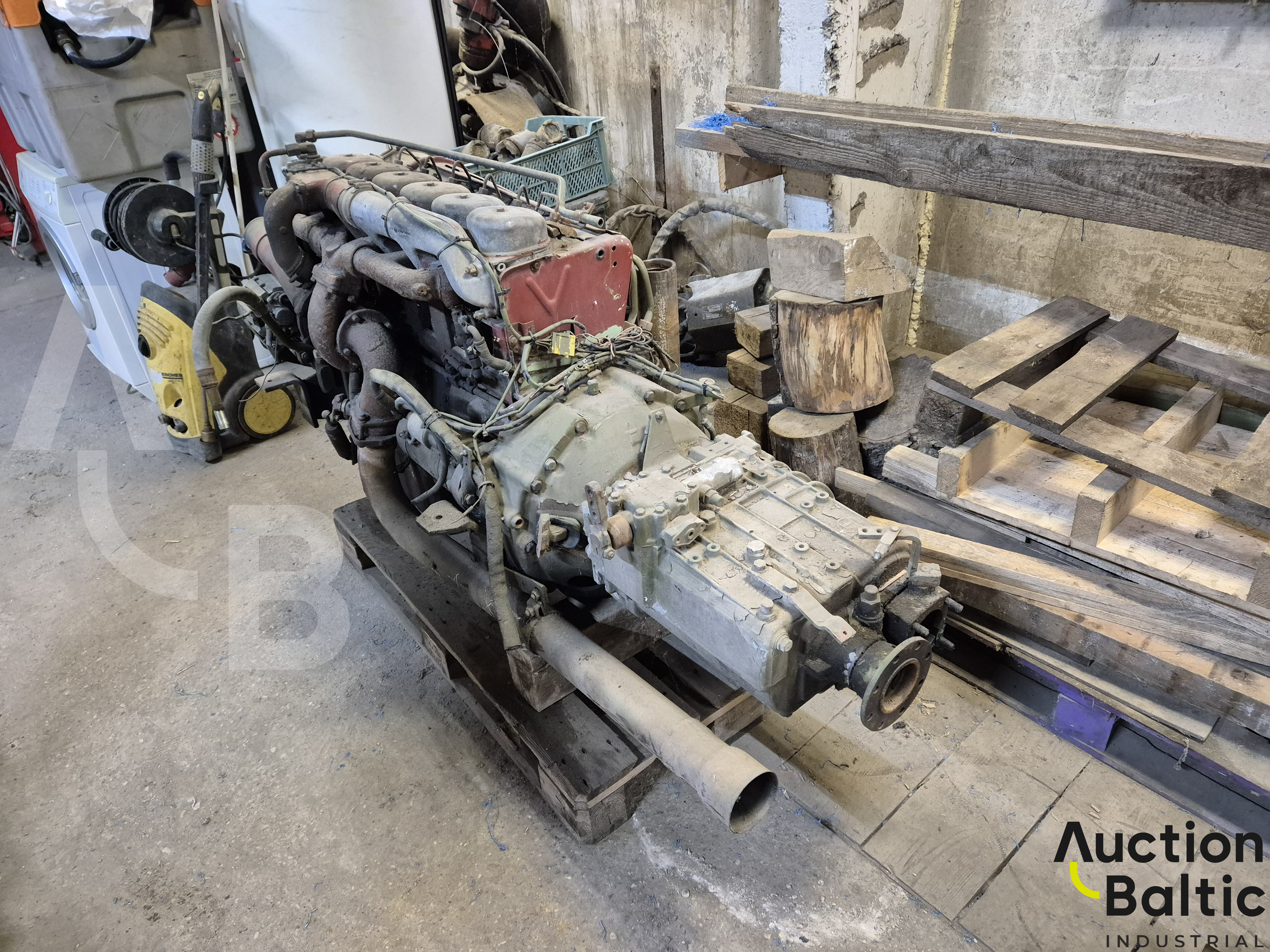 Iveco Magirus engine with turbine and gearbox in working condition.