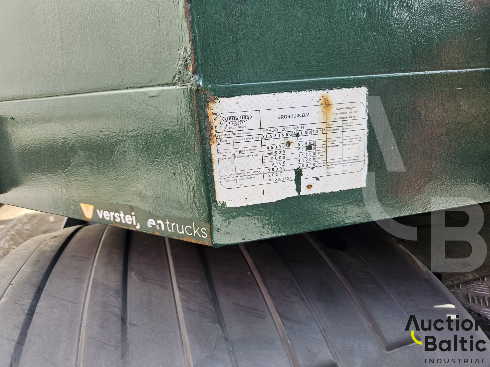 Tralas Broshuis 31N5-EU, weight 10 500 kg, gross weight - 53 600 kg, year - 2007 m, VIN: XL931N5GA7L007219, technical inspection valid till 2026-09-03.