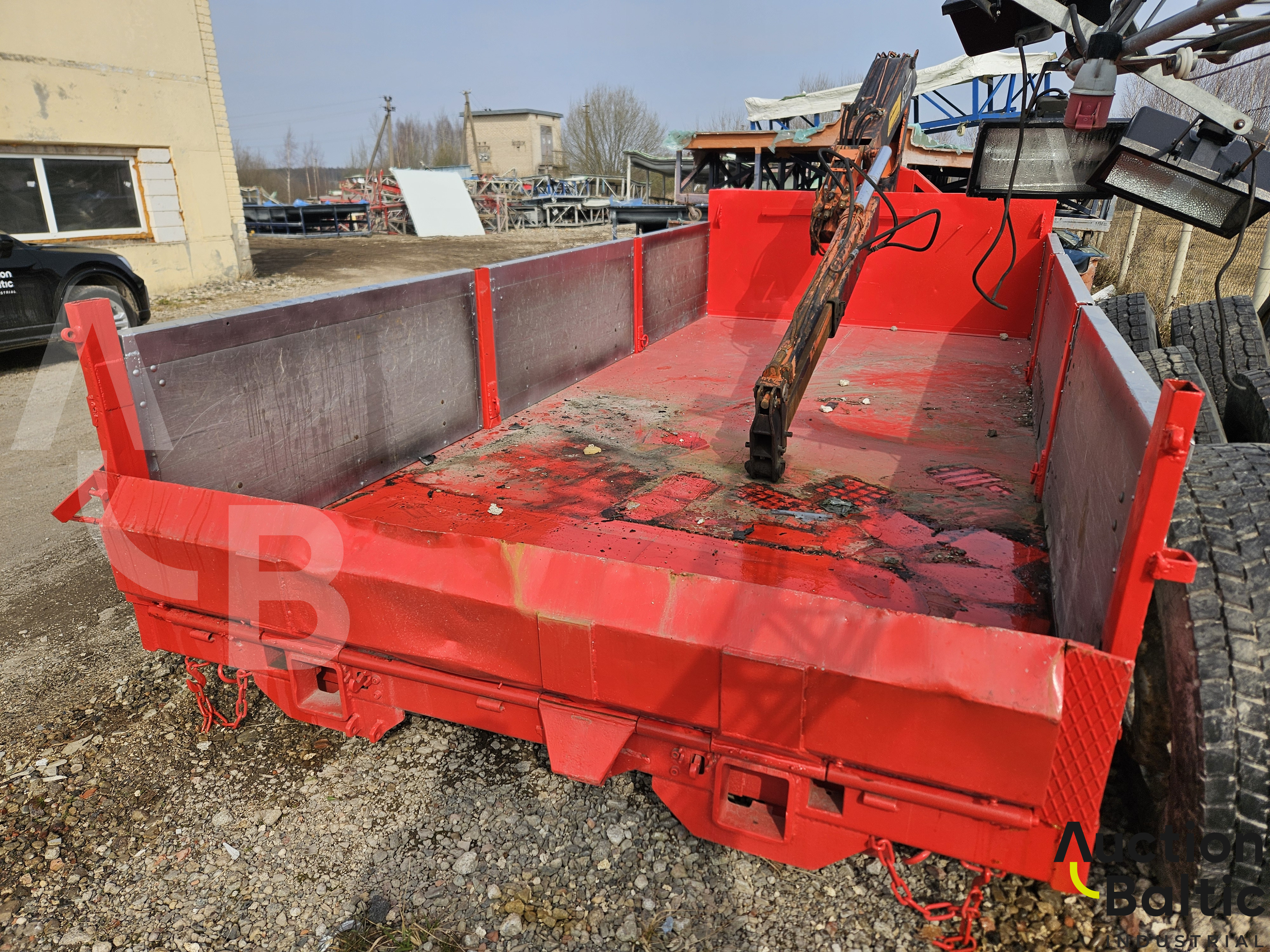 Sunikvežimio priekaba su manipuliatoriumi darbinės būklės.