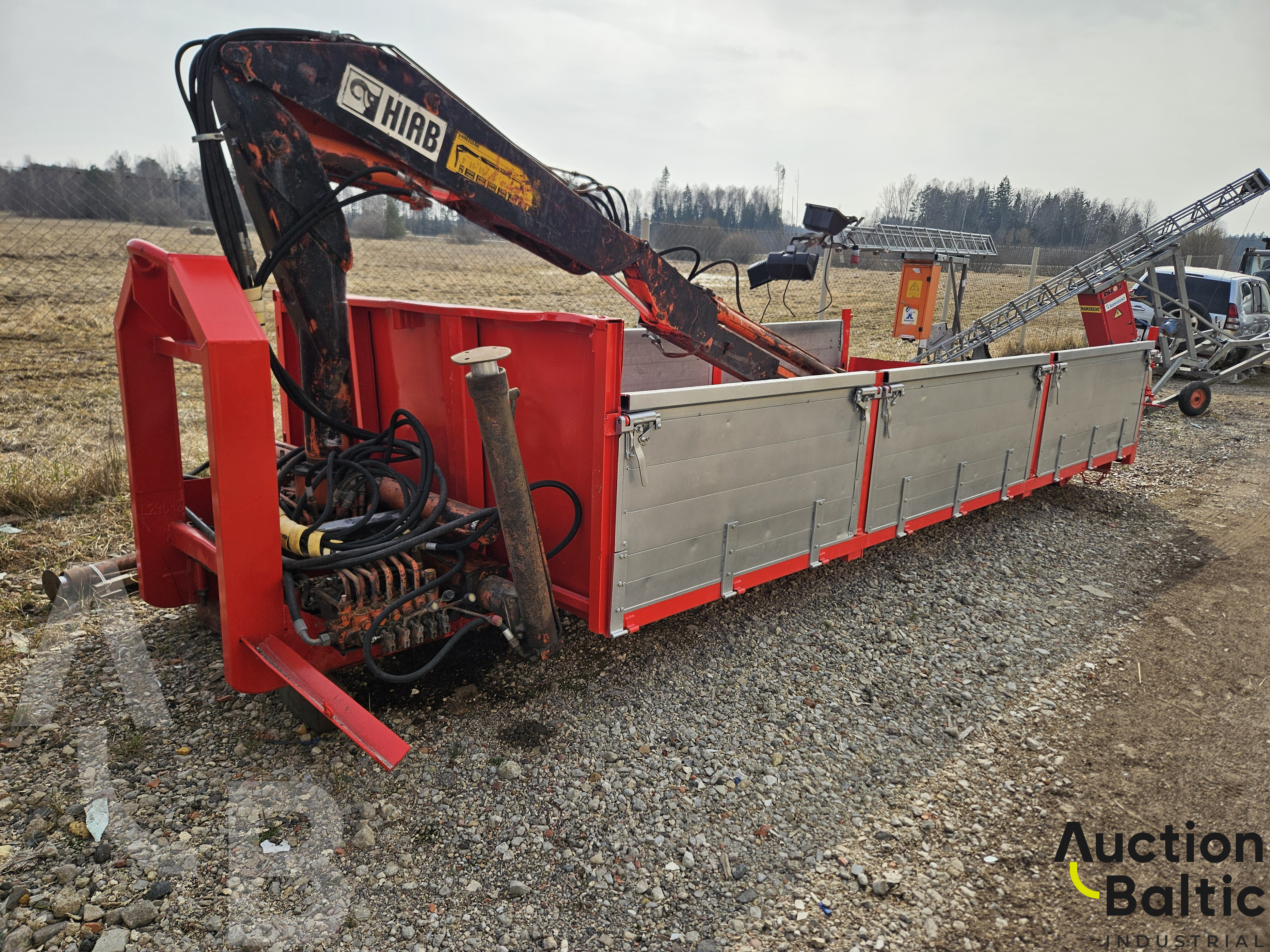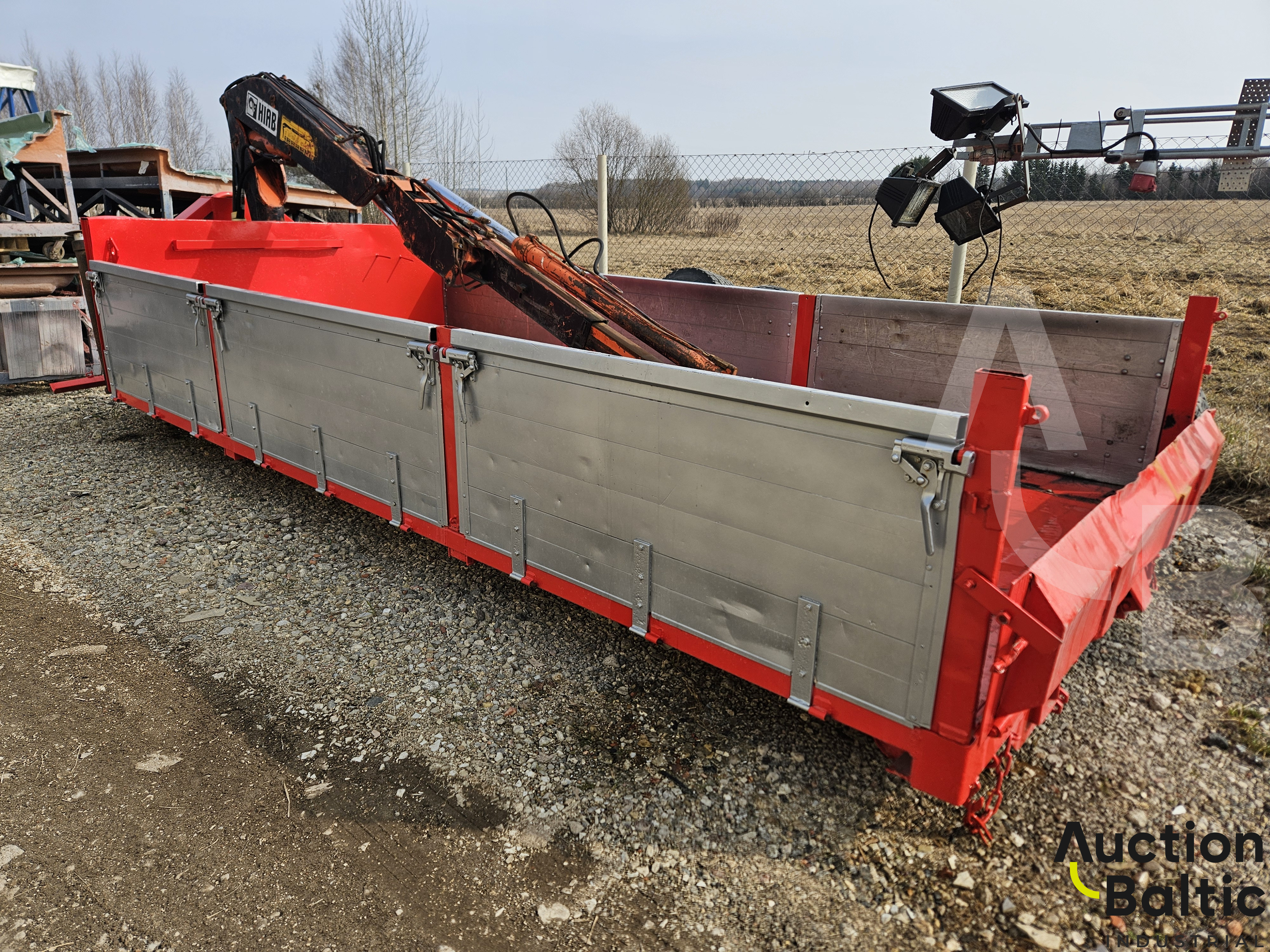 Truck trailer with crane in working condition.