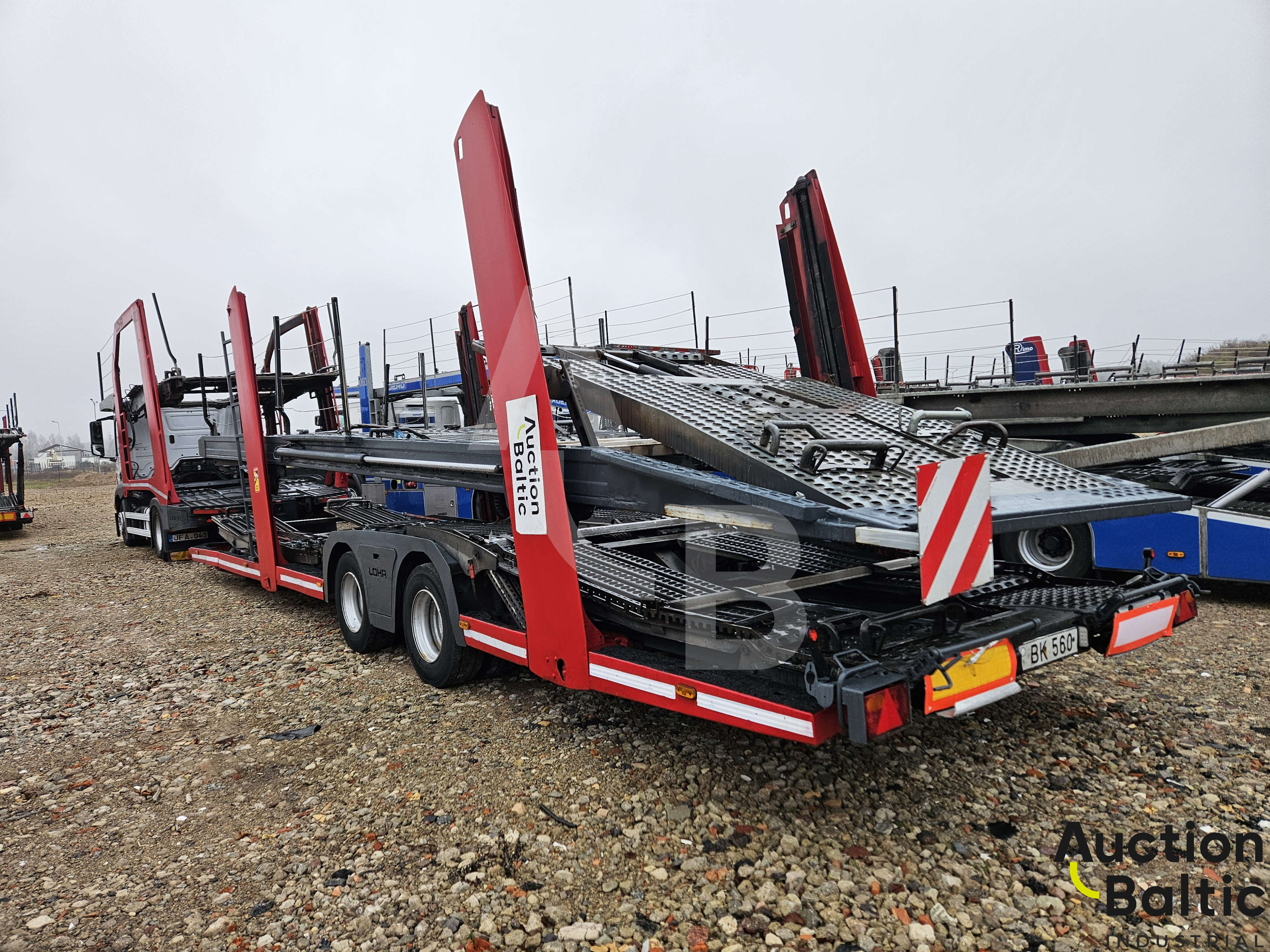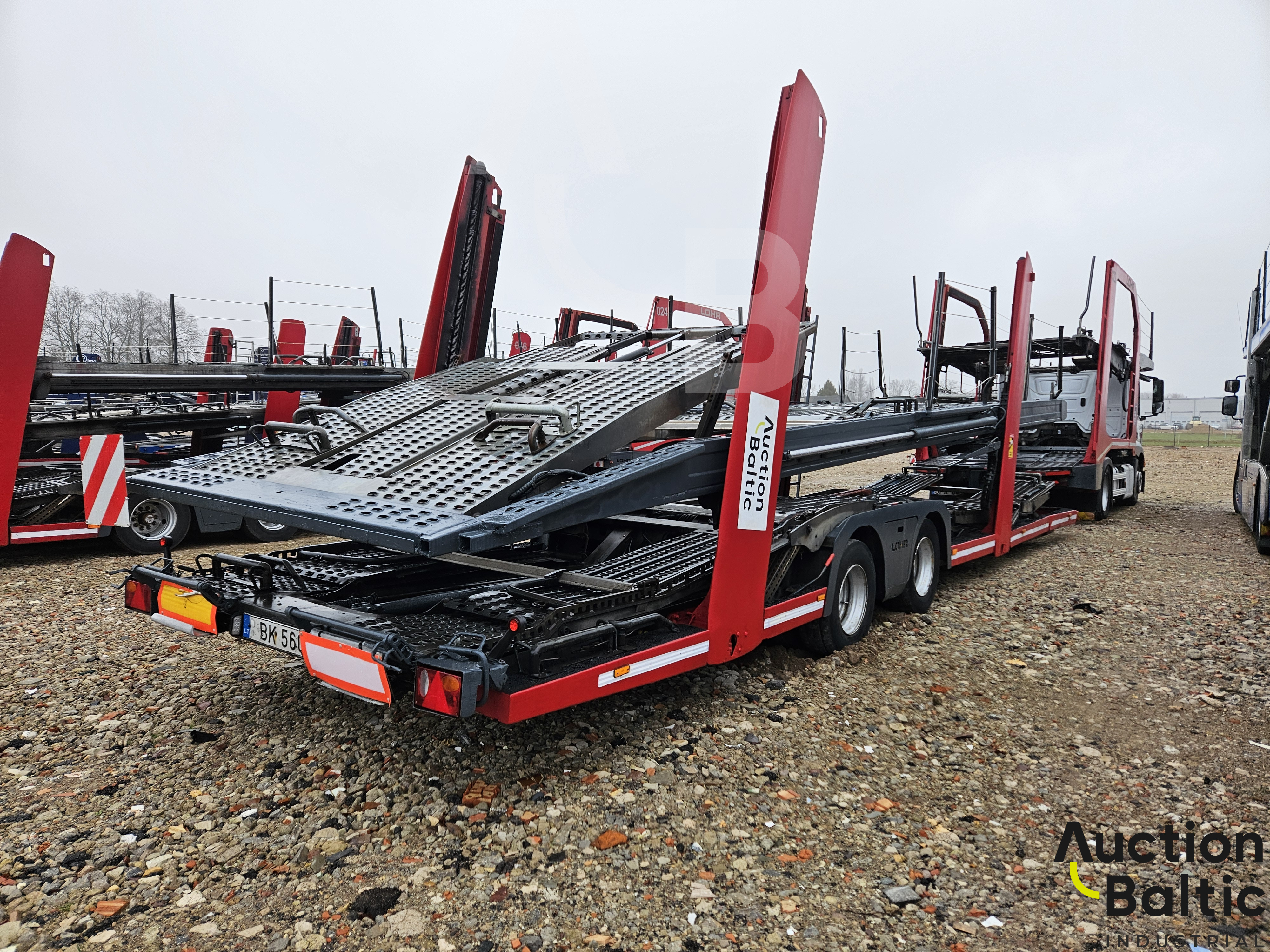Car transporter with trailer LOHR in working condition.