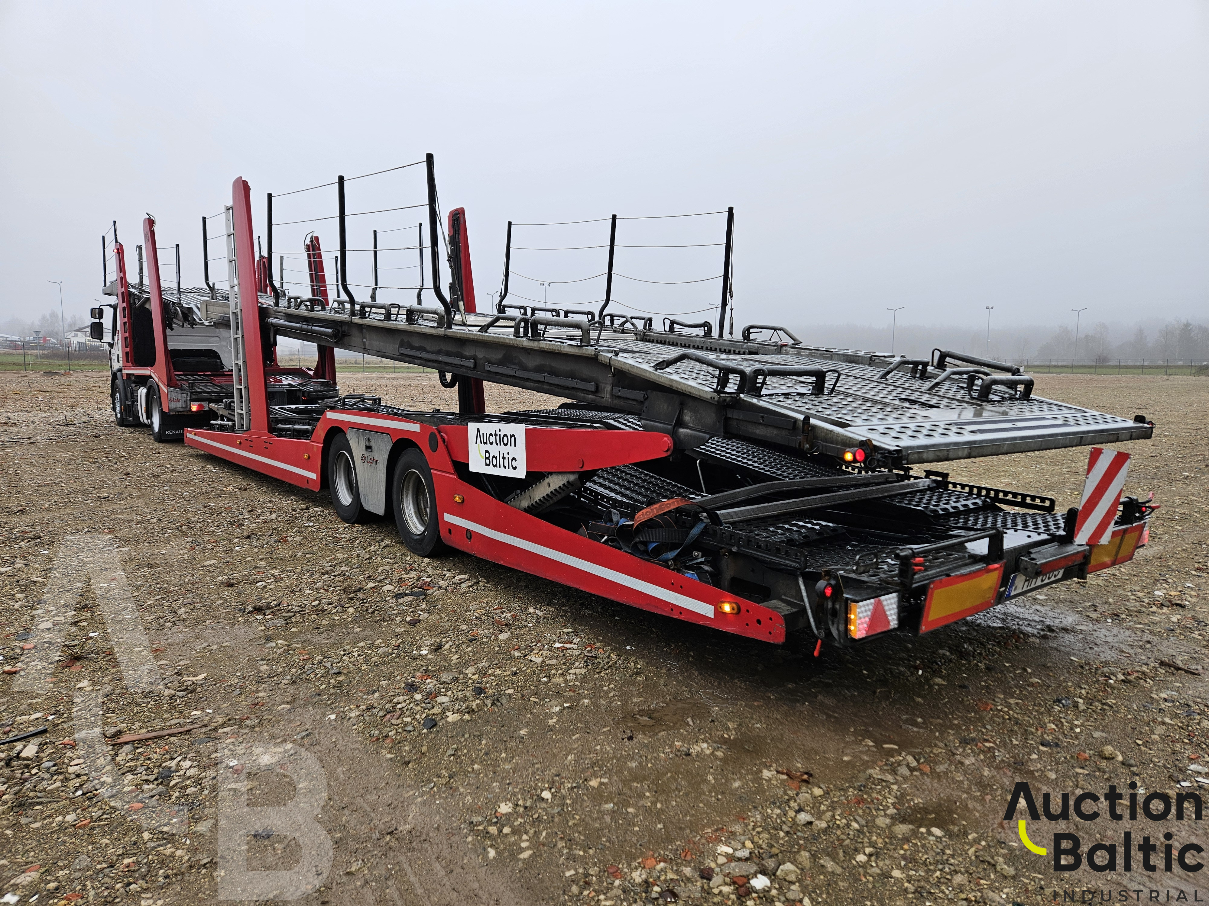 Car transporter with trailer Lohr Eurolohr 200 in working condition.