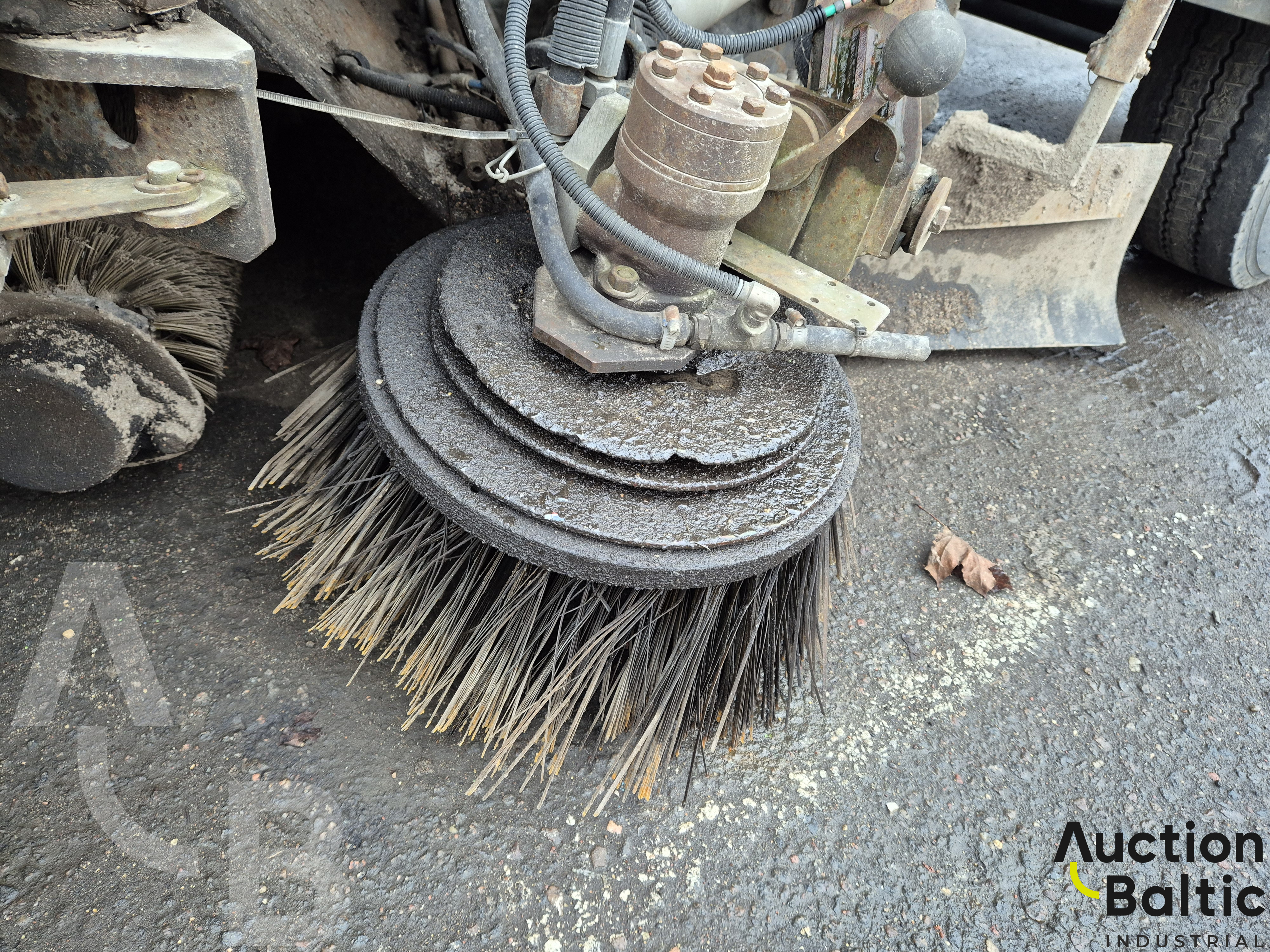Street cleaning machine (sweeper) in working condition.